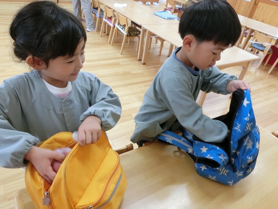 うれしそうにカバンの中に入れています。