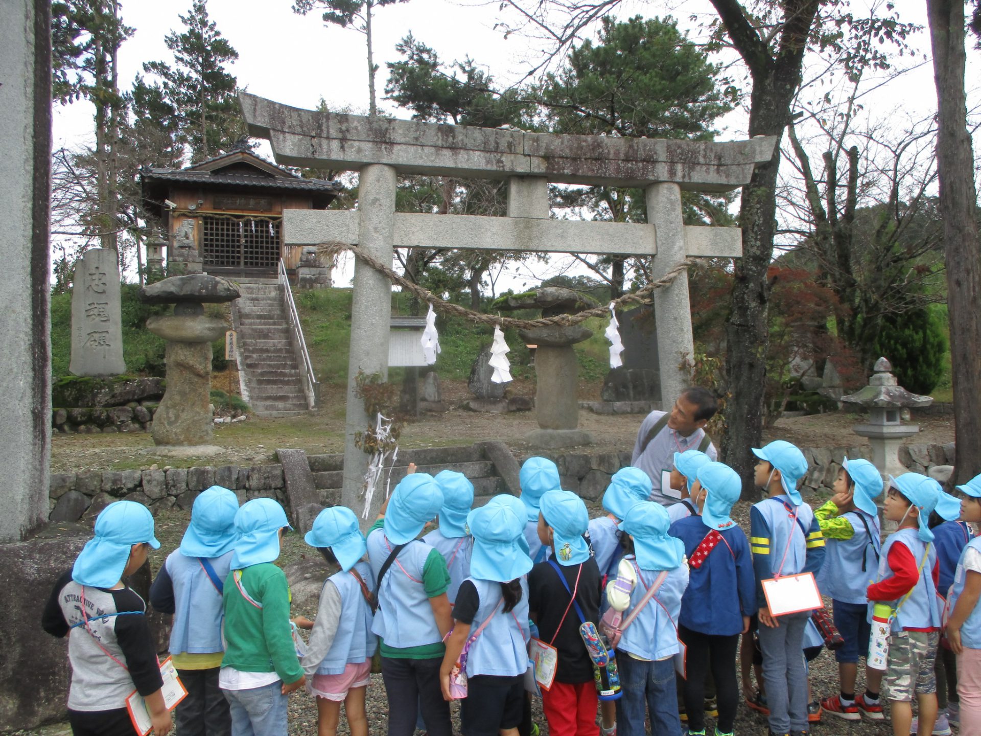 神社で皆でお参りしました。「大きくなれますように。」「学校に行って勉強ができますように。」