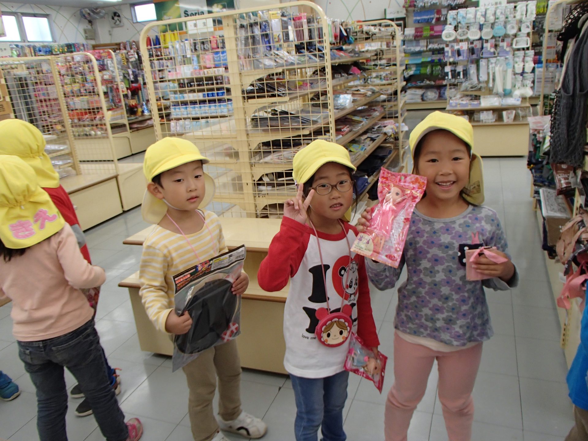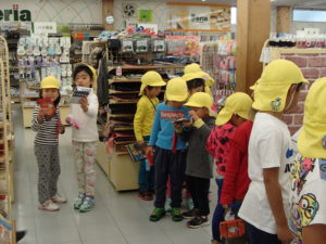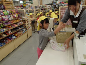 先に、買い物を終えたクラスは、お店の人に迷惑にならないように、静かに買った物を
