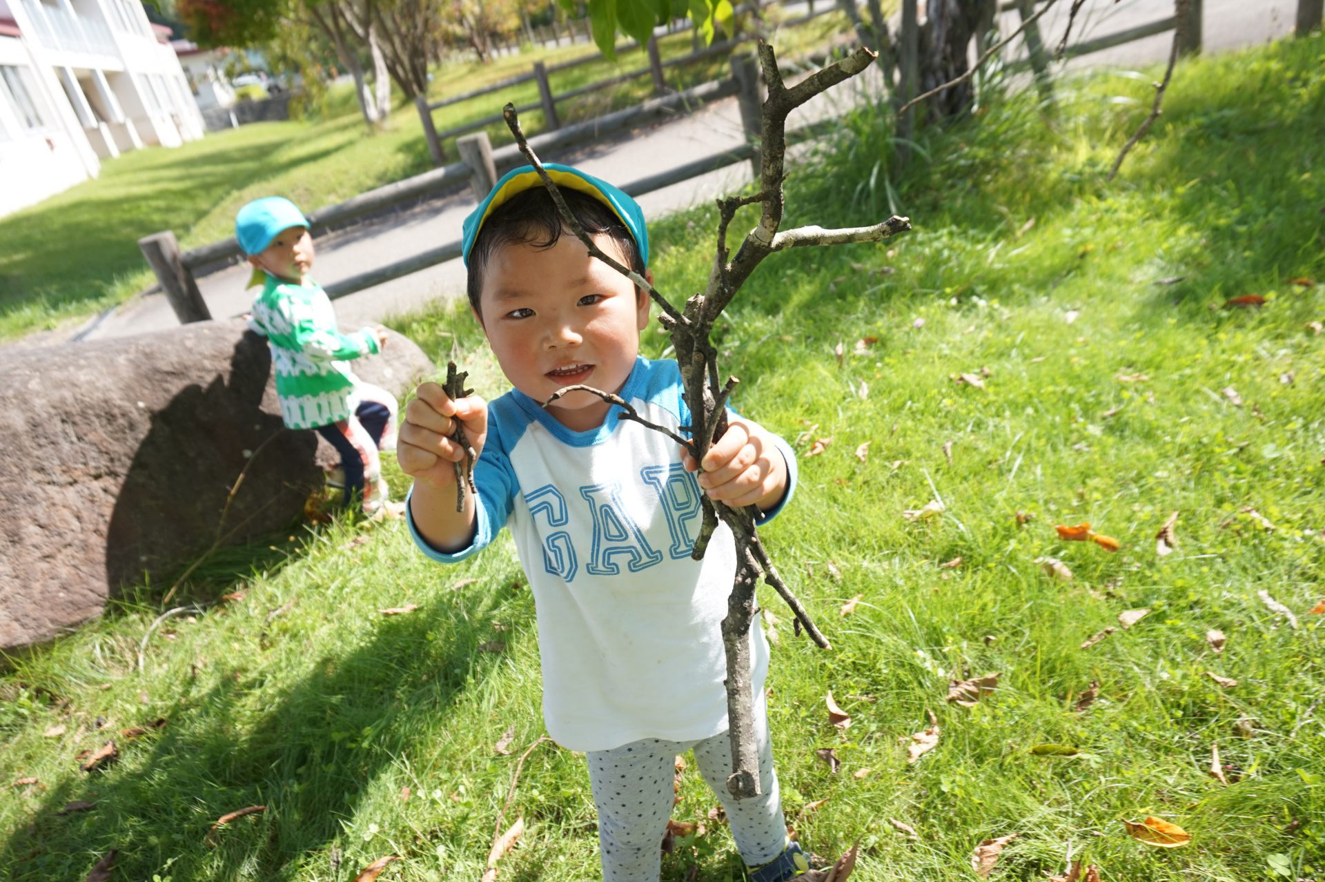 カレー会で使う木(薪)見つかるかな?保育士が声をかけると、