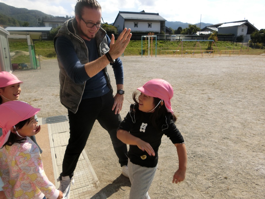 楽しかった英語遊び、最後はヨード先生と一人ずつハイタッチして終わりました。