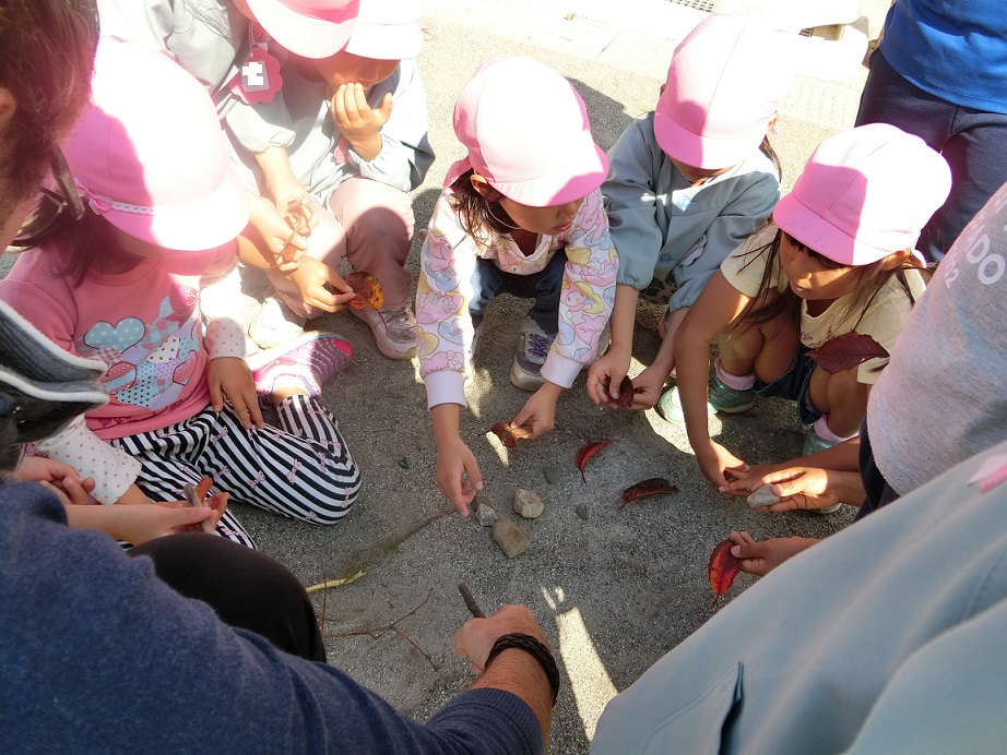 「この葉っぱとか使って何ができるかな?」「猫とか?」