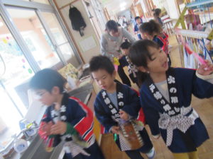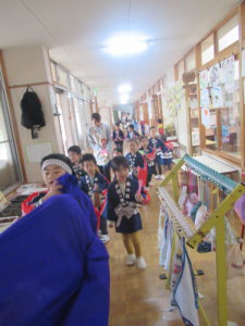廊下を練り歩くと・・・その姿は本物のお祭りのようです。