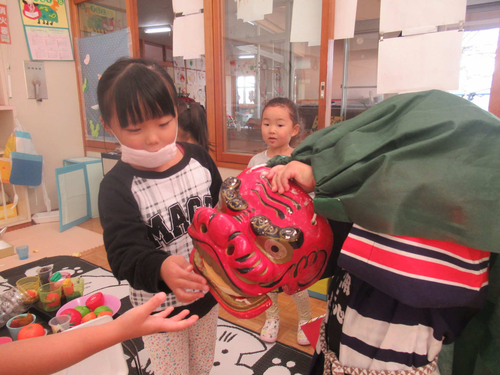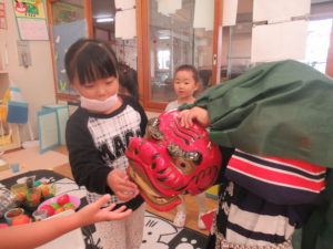 「食べちゃダメだよ。これ、お獅子さんにあげるのだから」