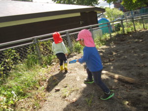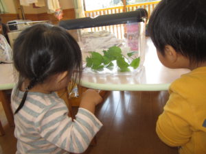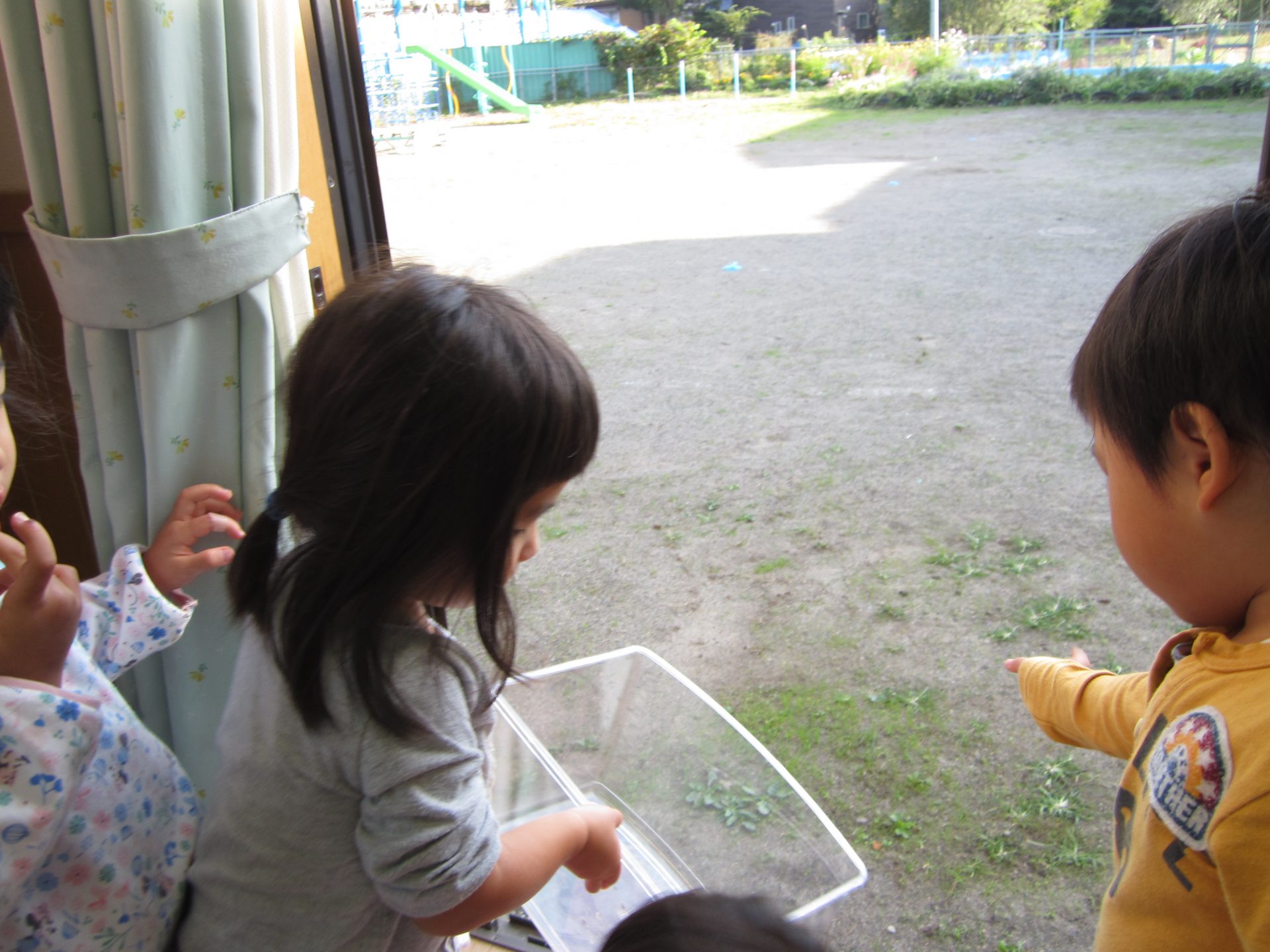 そんな虫たちともお別れの時。「虫さんどうしてあげたらいいかな」と聞くと「お外にかえしてあげたらいいんじゃないかな」という声が上がり、みんなで外へ放してあげることにしました。