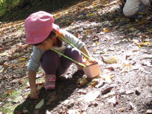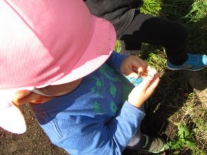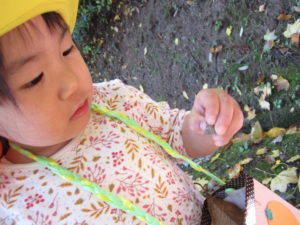 他にもどんぐりの帽子を見つけ、何かな?と観察する子もいました。
