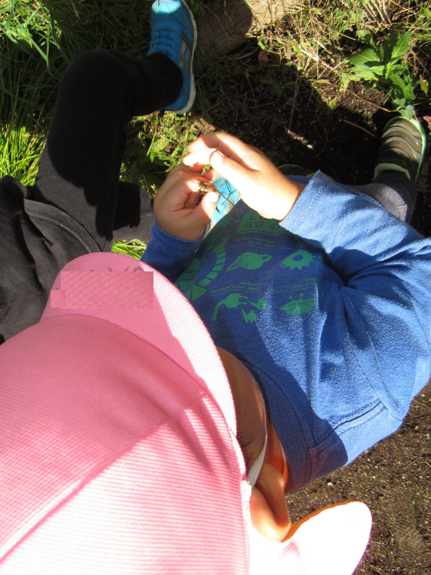 「そーっとね!」と今度は静かに近づいて、見事素手で捕まえられました!
