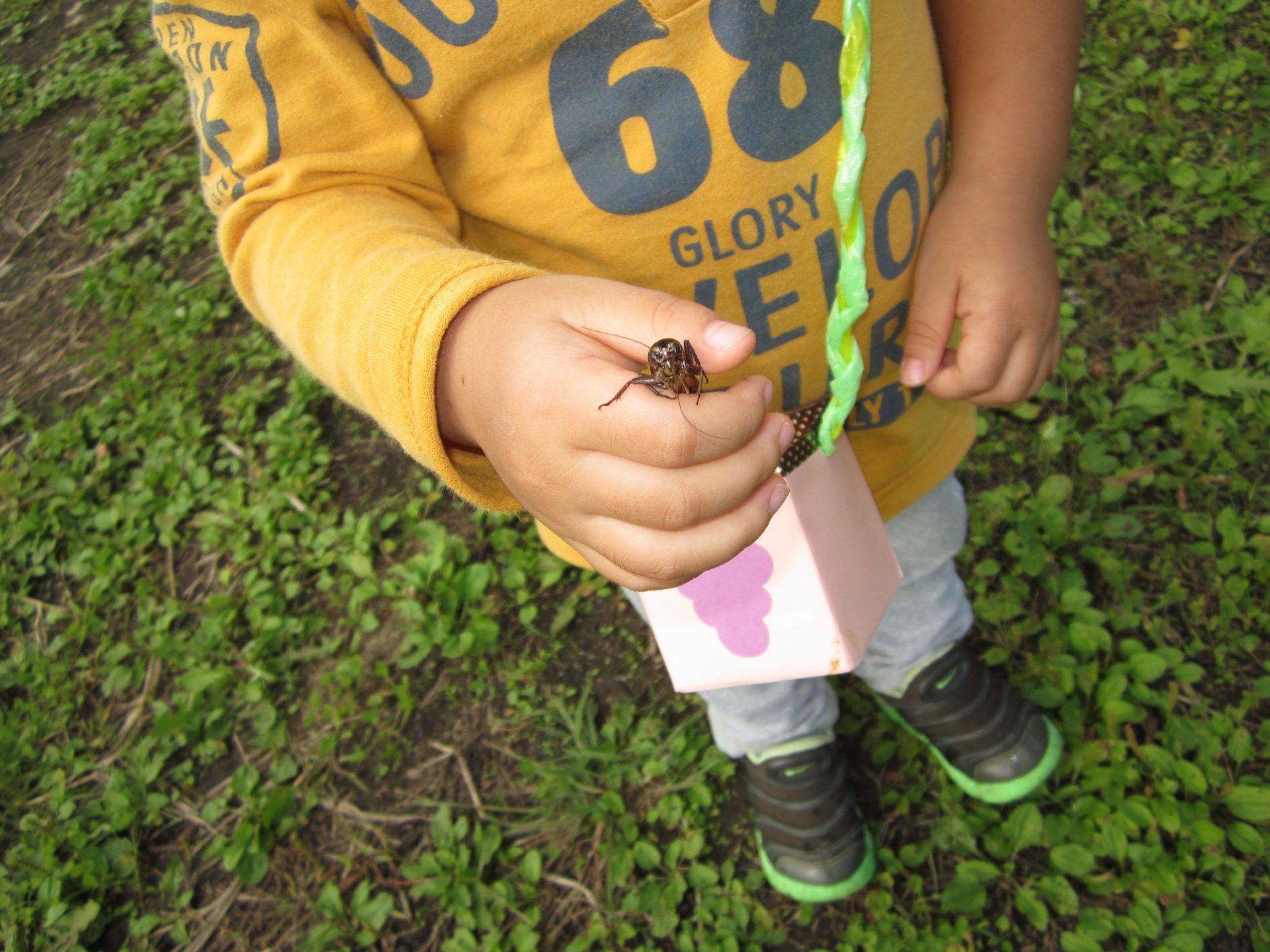 他にもイナゴやバッタにも出会い、捕まえた虫たちは1日だけ虫かごに入れてみることに。