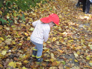 また、落ち葉の上を歩くとカサカサと良い音がする、と発見し何度も上を走ってみたり、