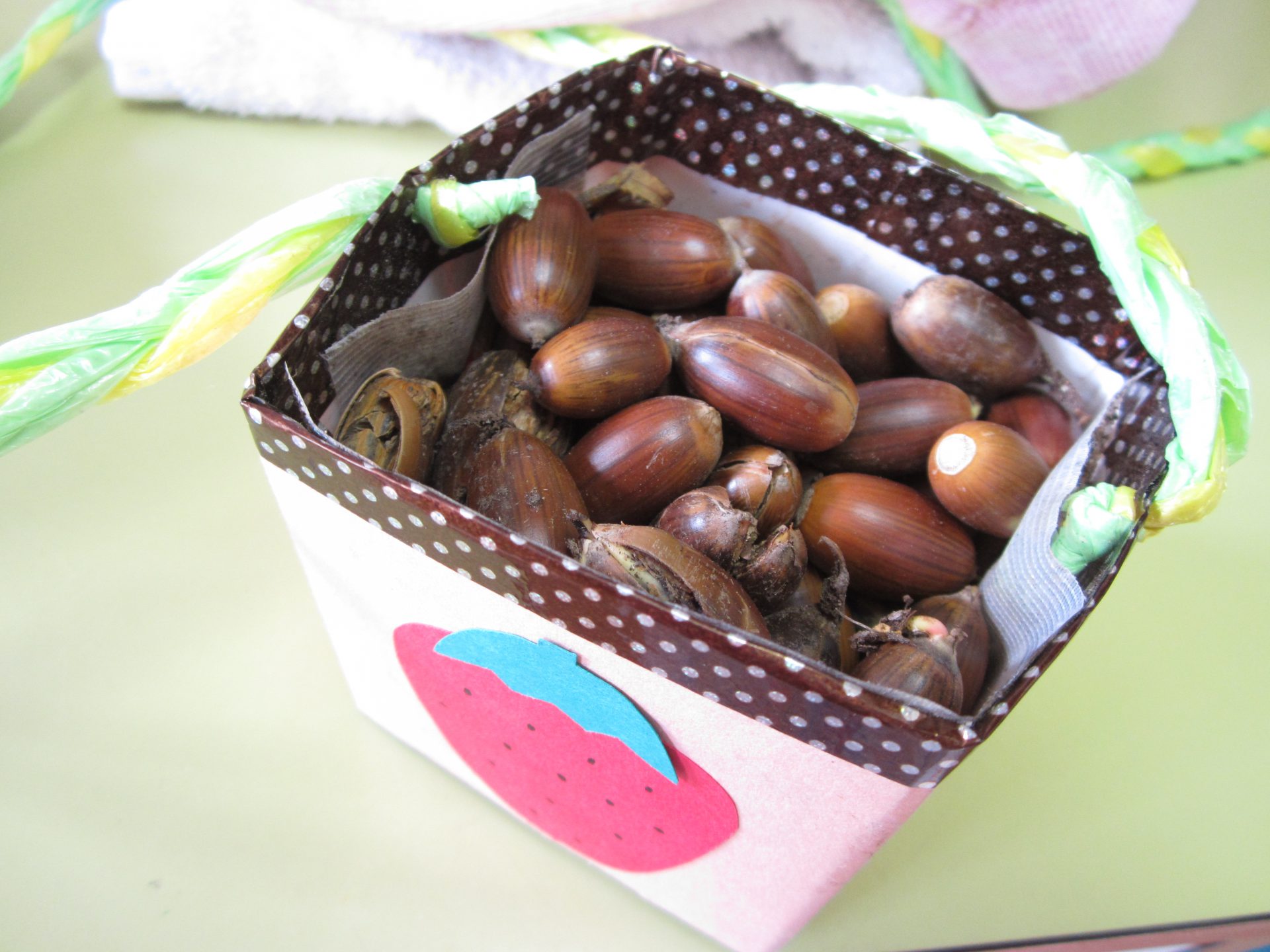 気づけばお散歩バックはどんぐりでいっぱいです。素敵なお土産になったね!