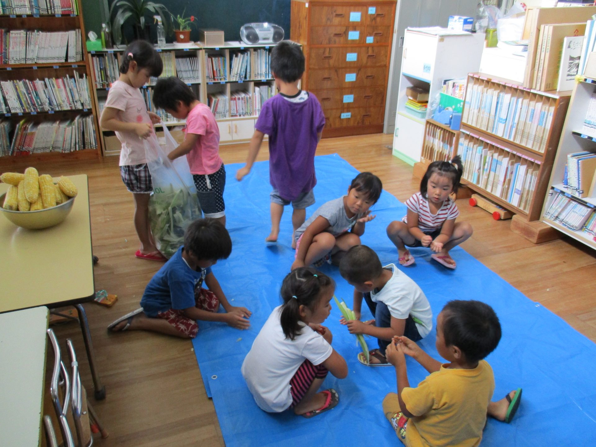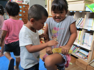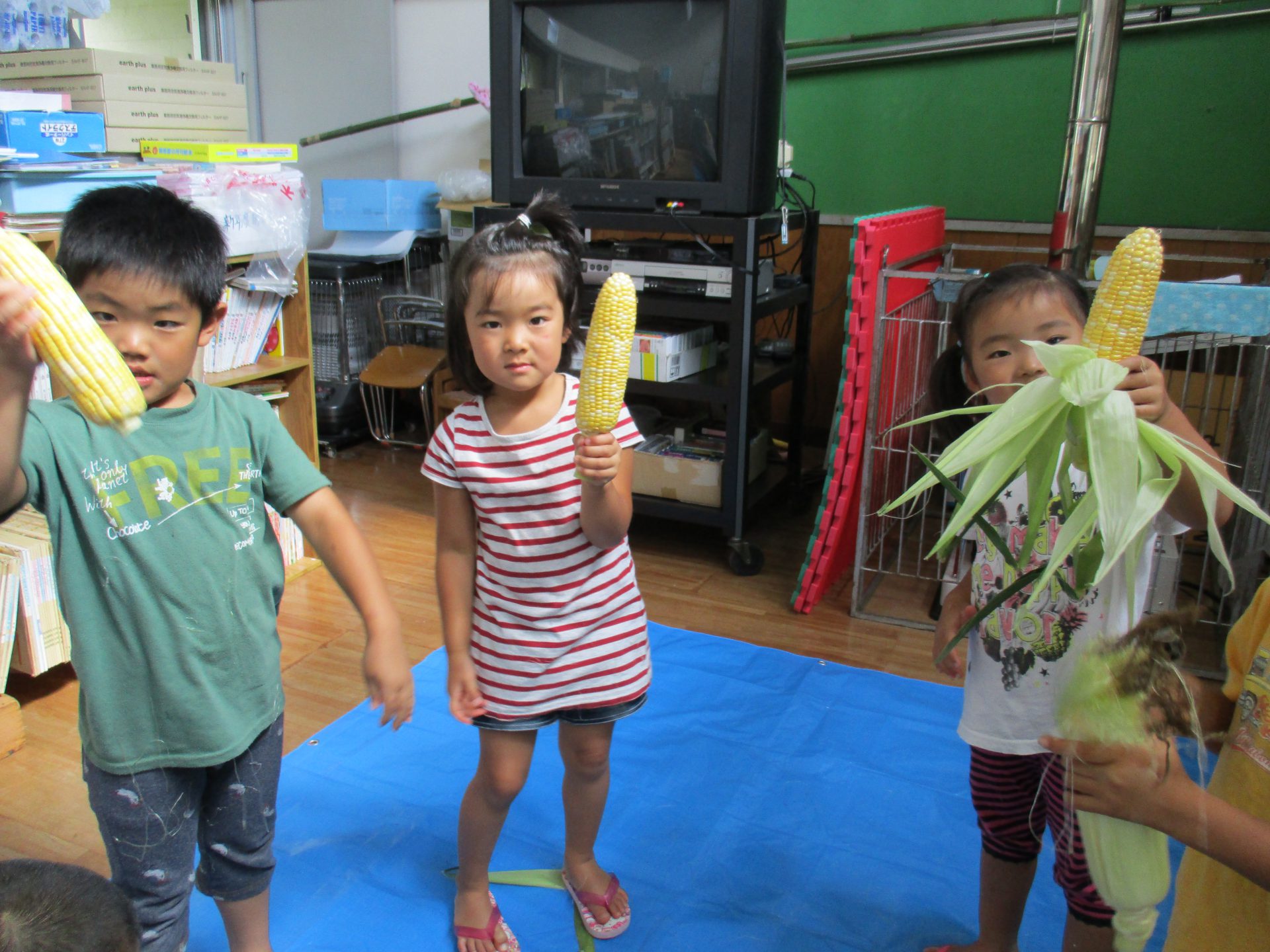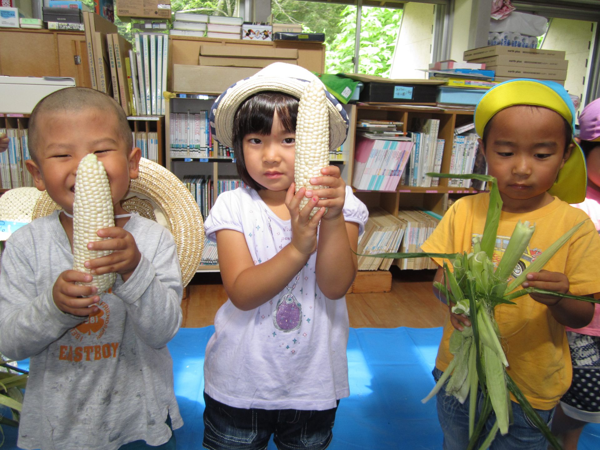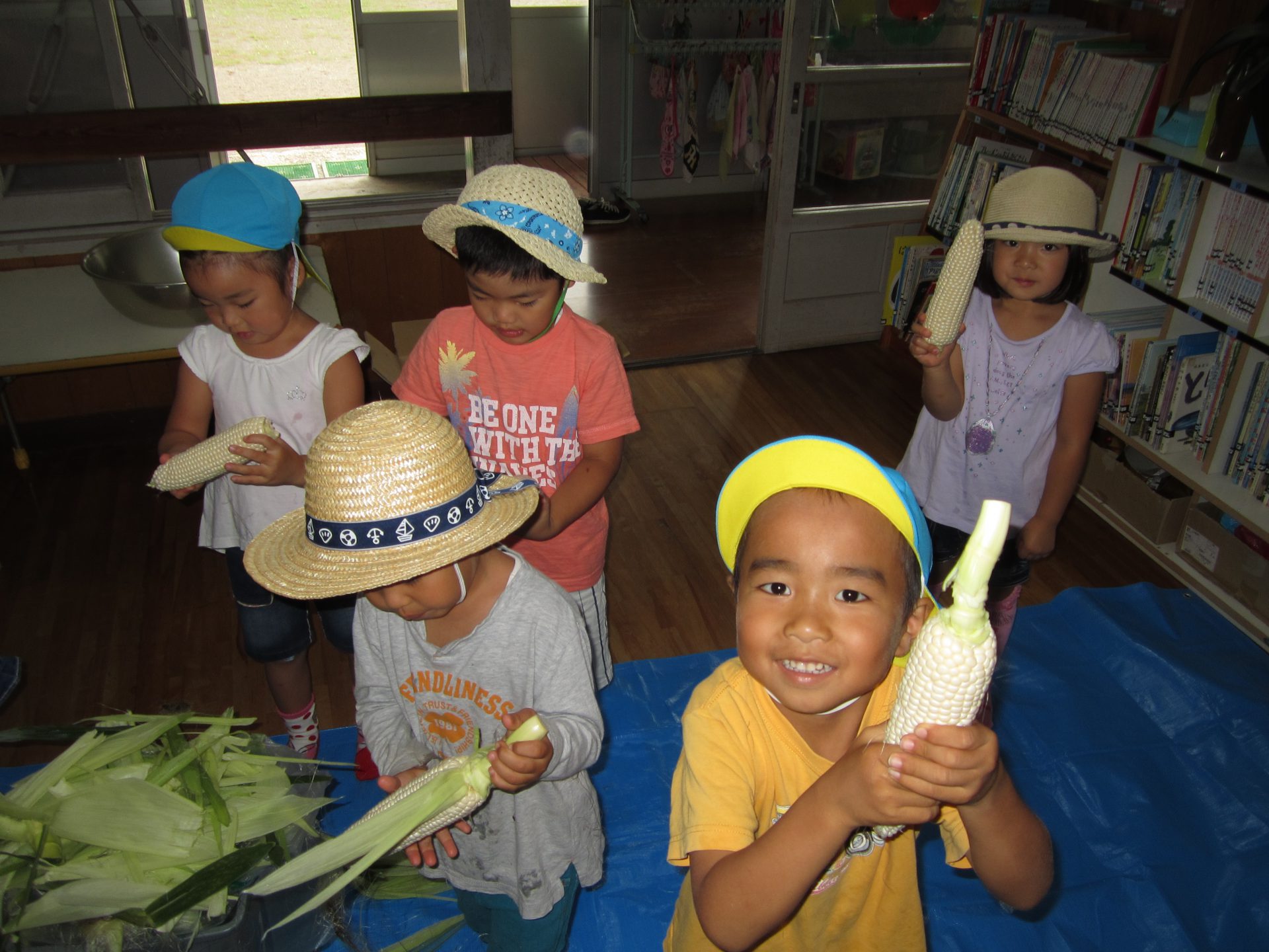 3歳児さんでも、お家でモロコシの皮むきをしたことがある子もいて、「やったことあるよ!」と得意気に教えてくれました。
