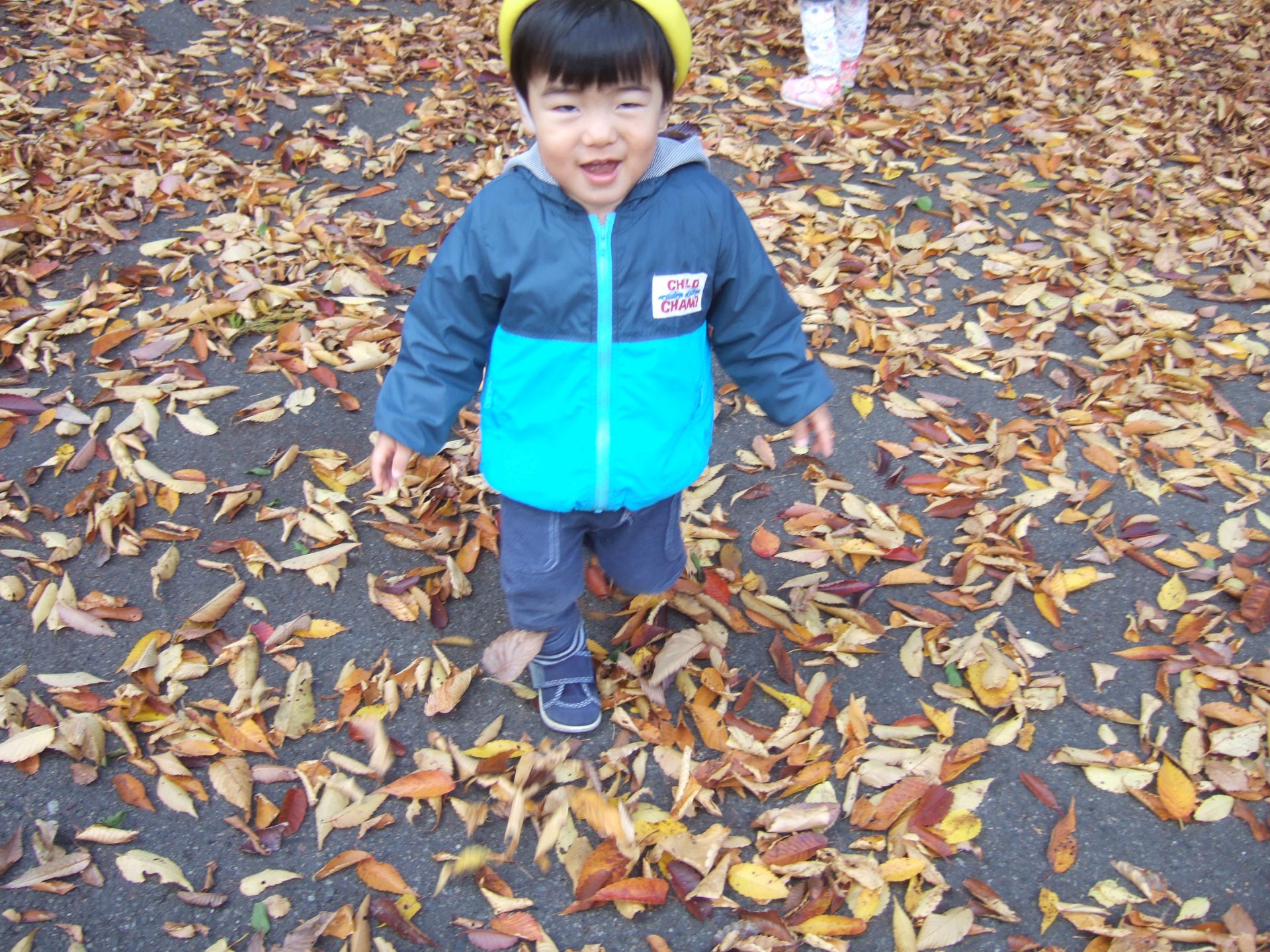 木の葉を踏みしめる感触、”カサカサ”という音、この時期のお散歩ならではですね!