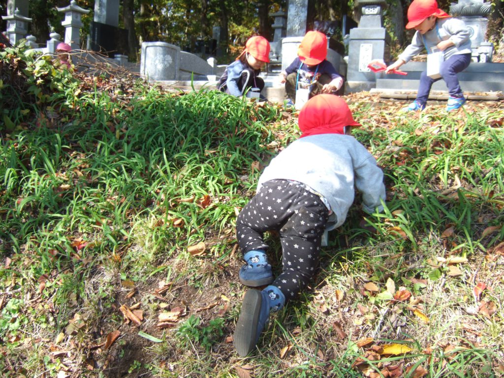 そして、秋の自然、木の実、木の葉、虫、風の冷たさ、お日様の暖かさ、など様々なものを見て、触れて、感じられるような活動をたくさん楽しんでいこうを思います。