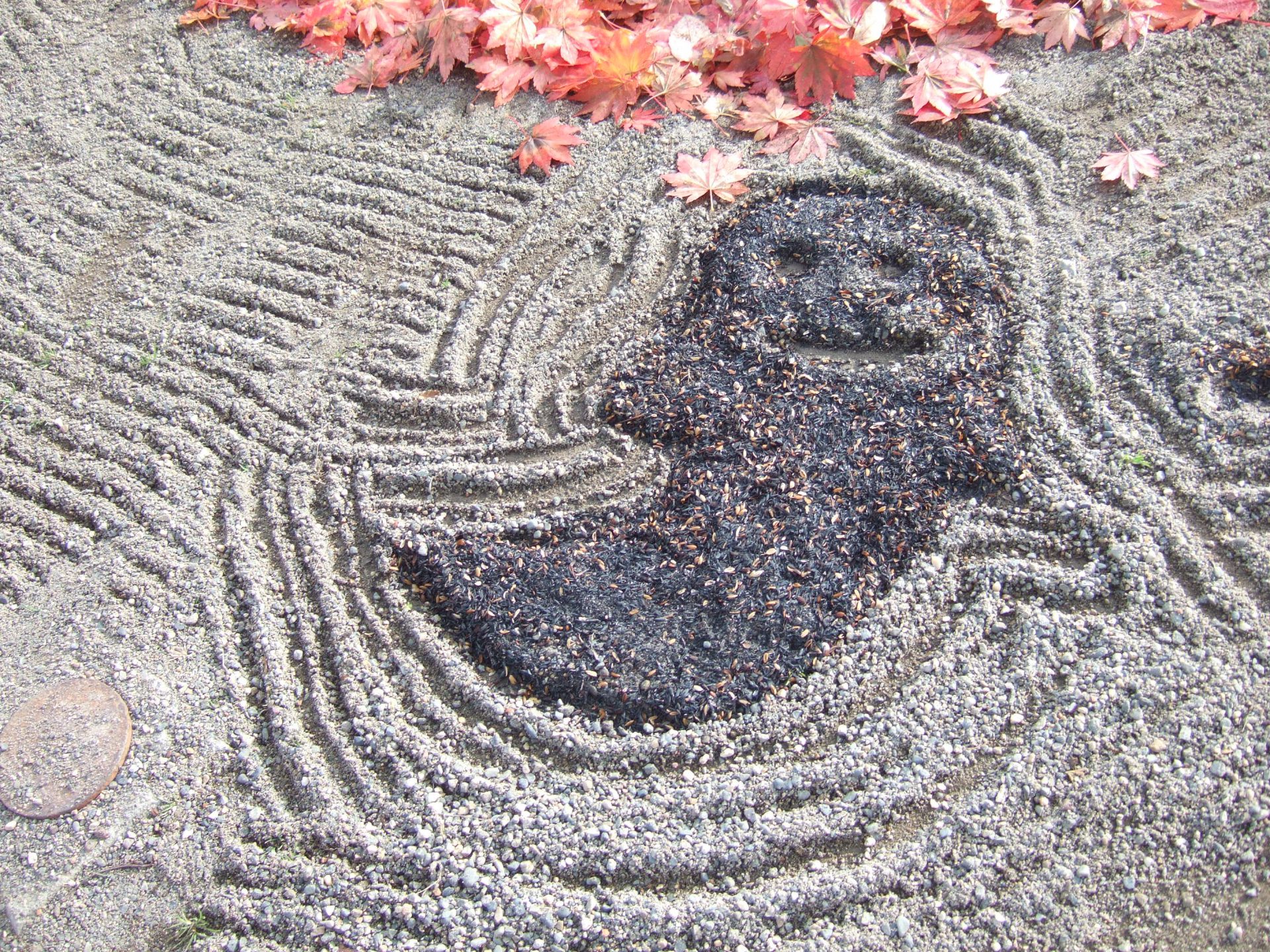 木の葉の道を楽しんでいたあんずさんだったので、もっとたくさんの木の葉の中で遊ぼう!と次の日は妙専寺にお散歩に行きました。