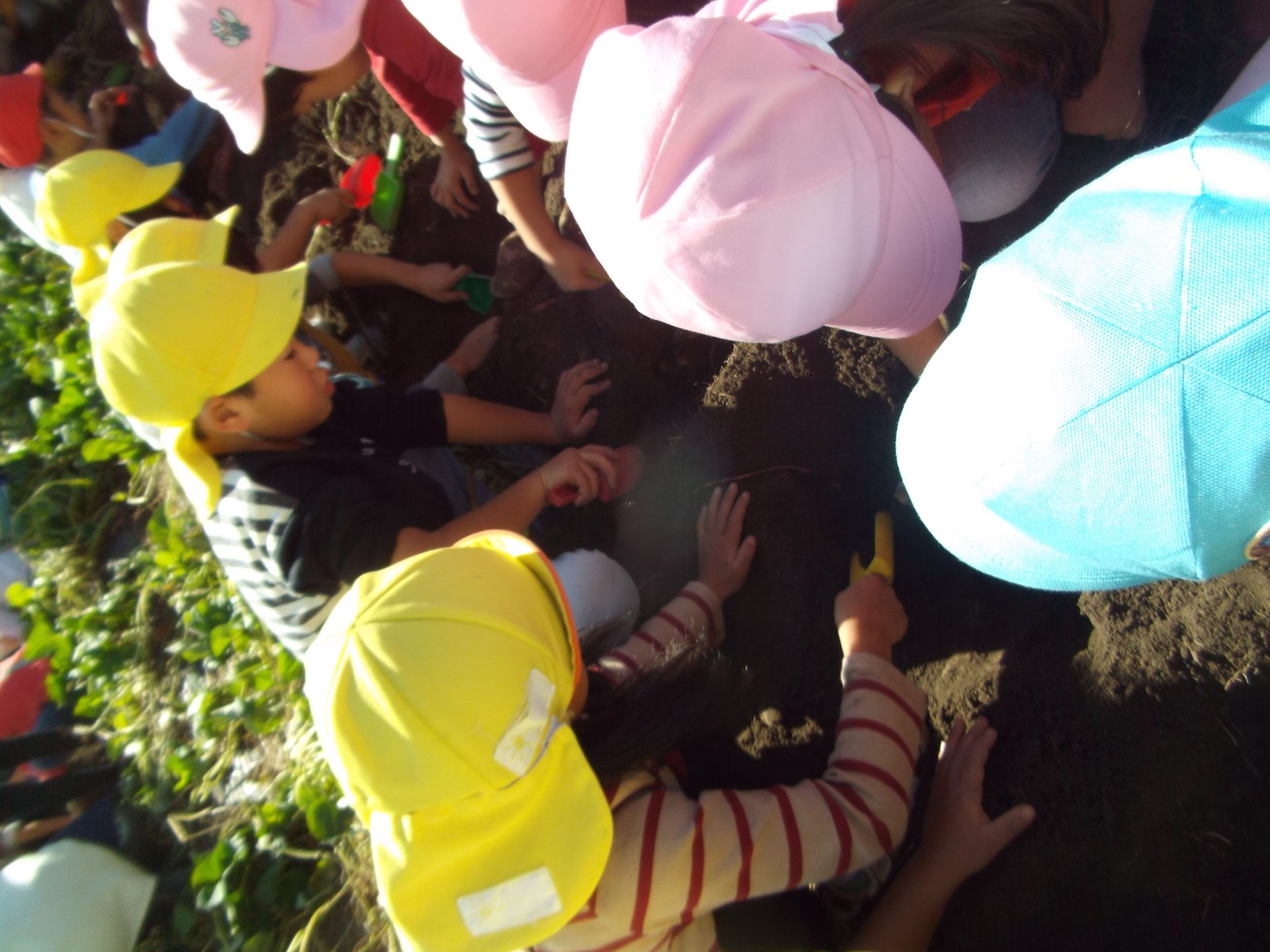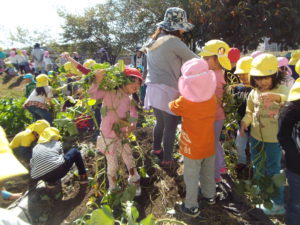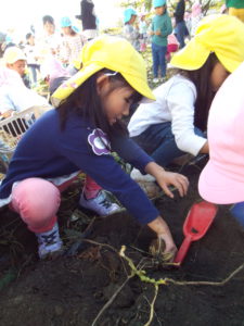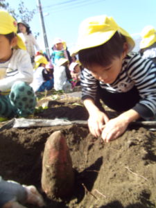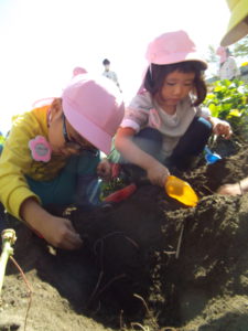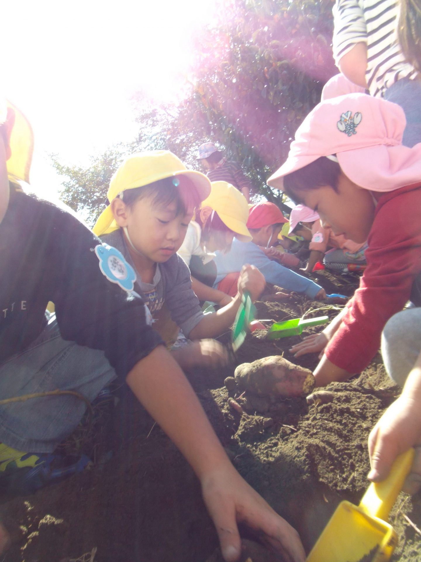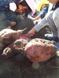 自分で育てた大きなおいもの収穫を本当に喜び、
