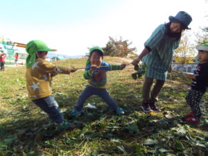 長~いツルは、年少さんや2才のいちご組さんも大歓声!