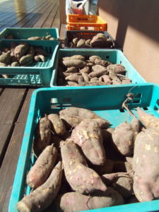 土の中でむくむく大きくなったね、沢山採れたさつまいも。