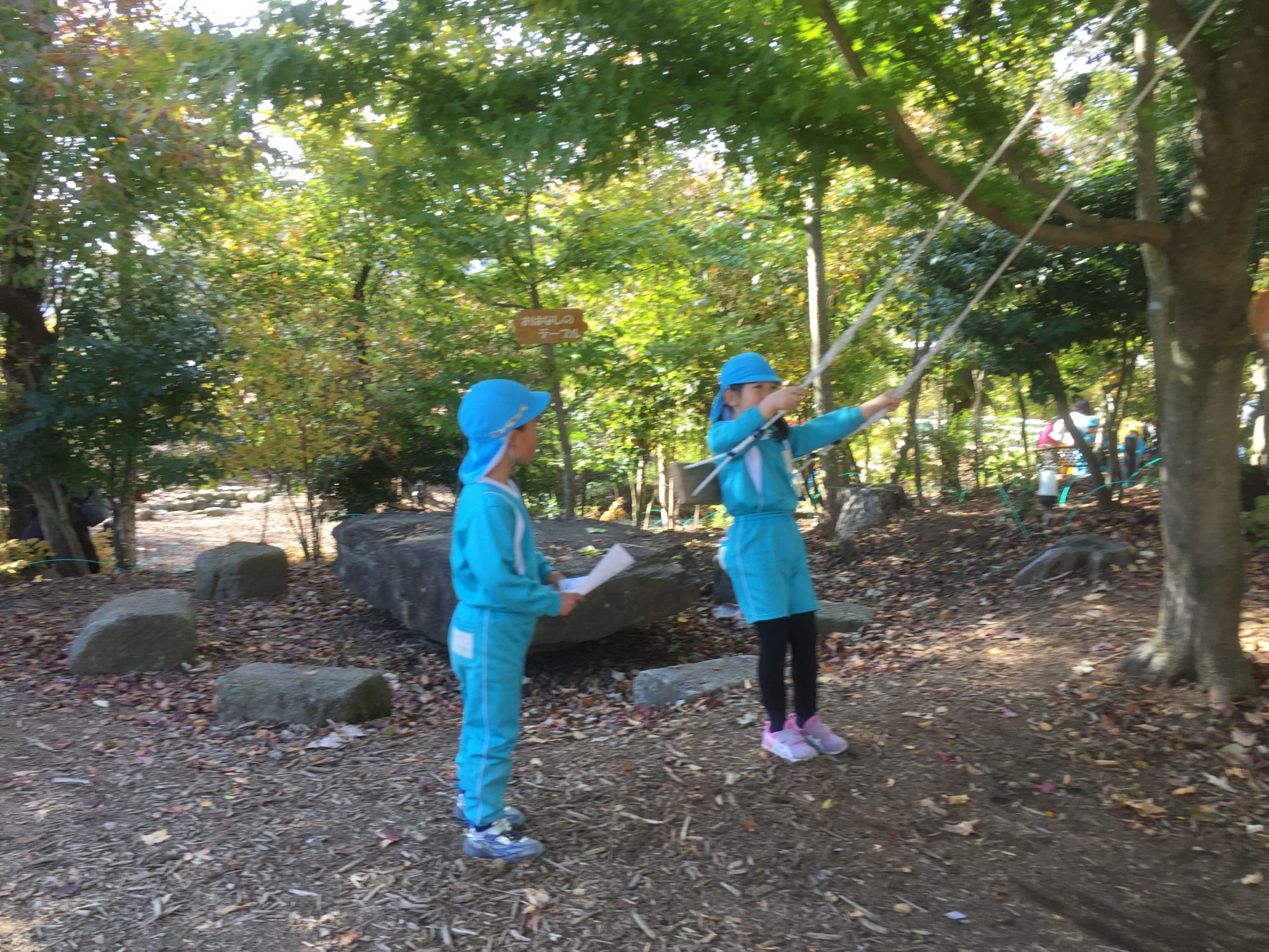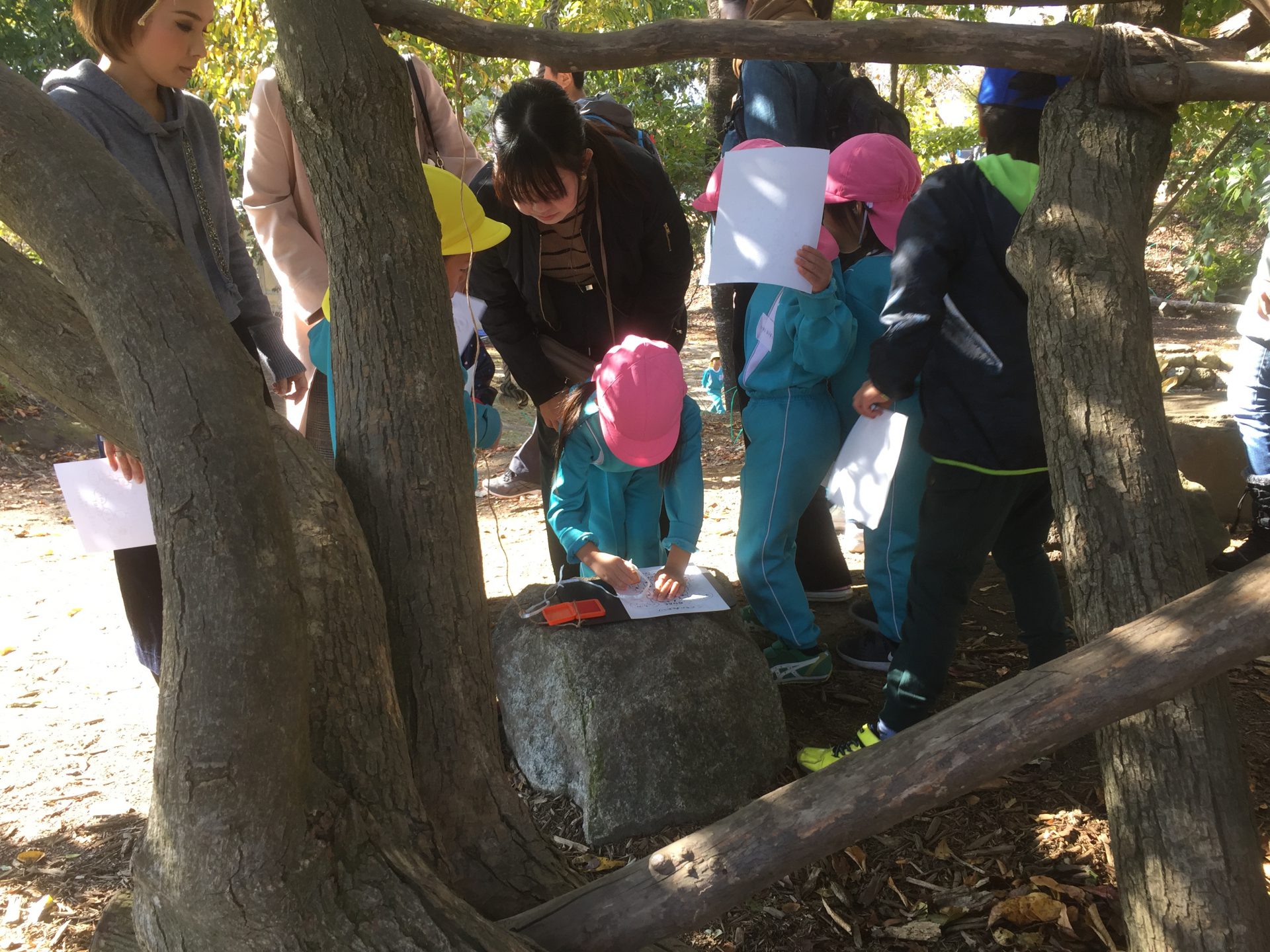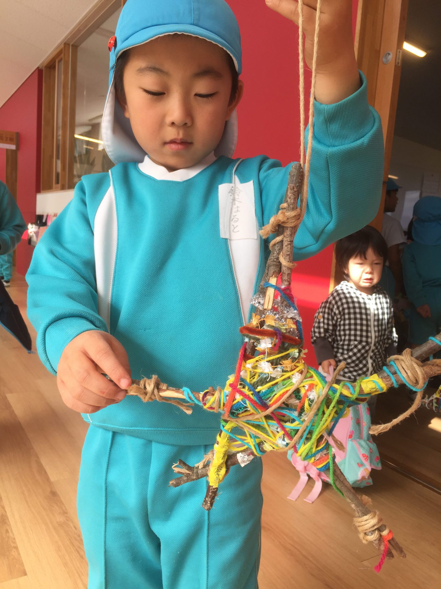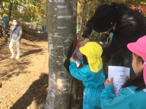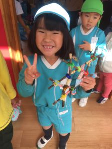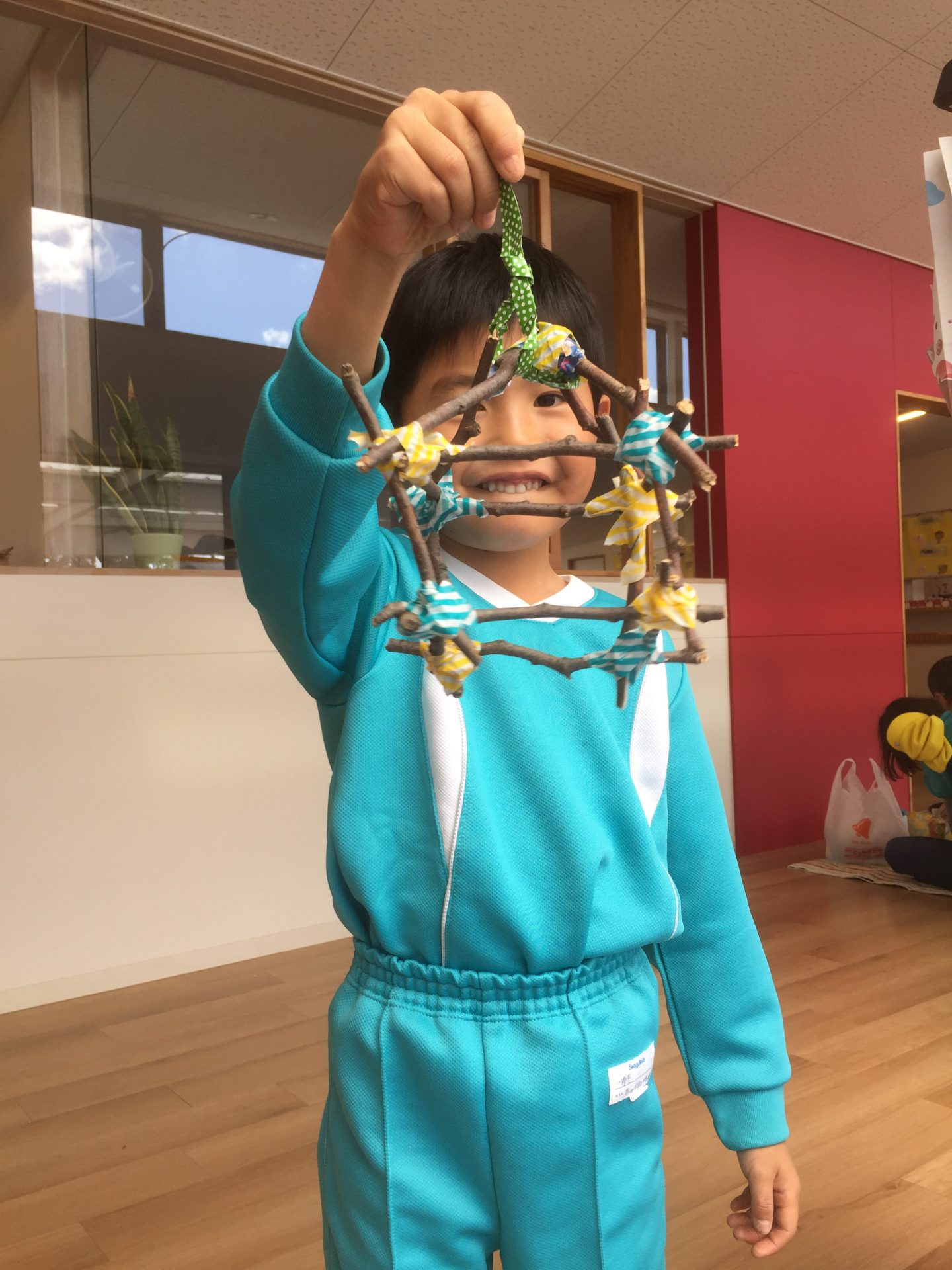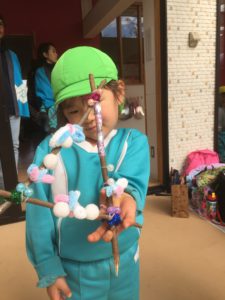 スタンプを5つ発見出来た子は、先生から枝をもらいました。