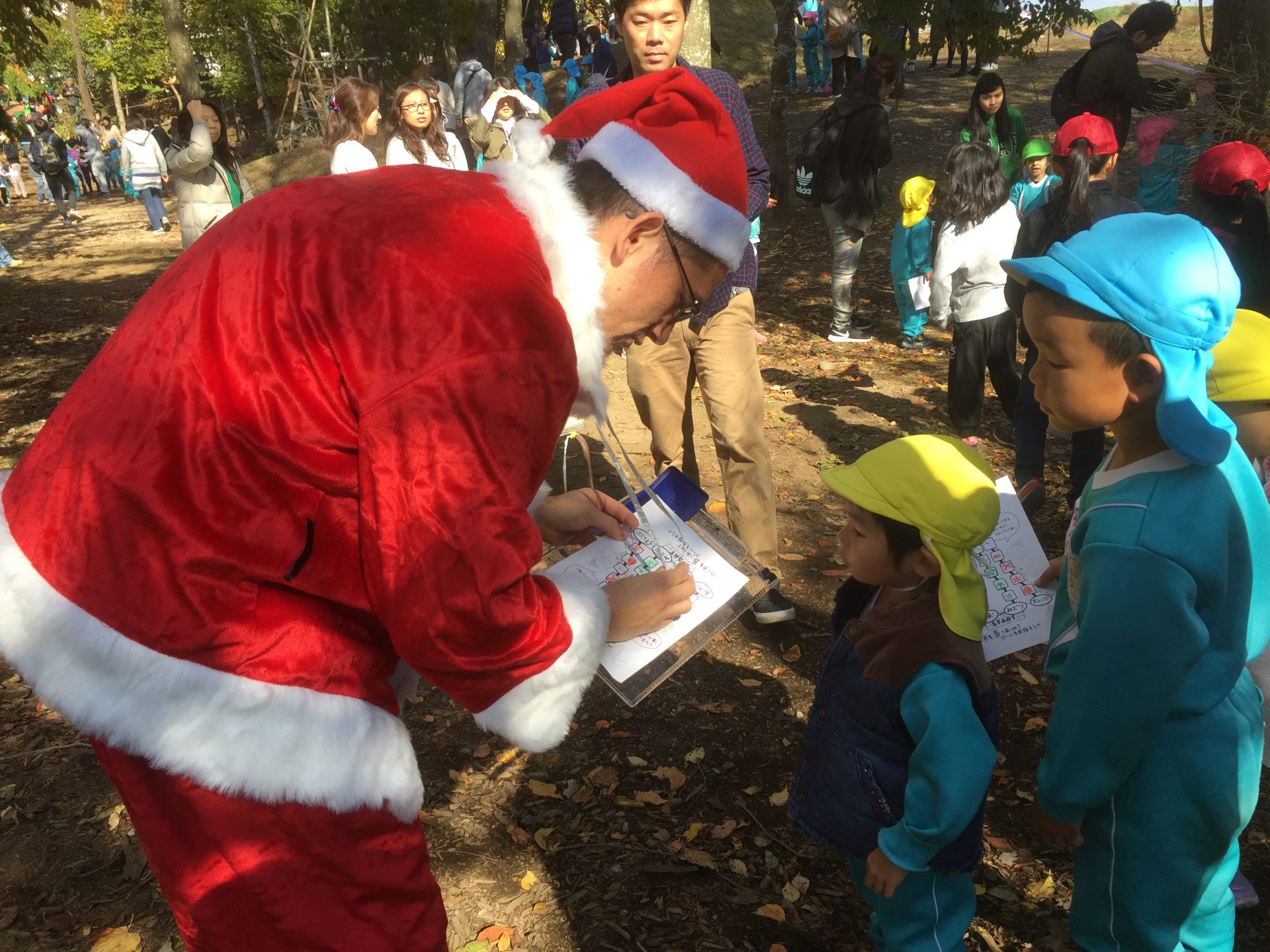 森の中で、サンタクロースやトトロに会えて子どもたちも大喜び!!