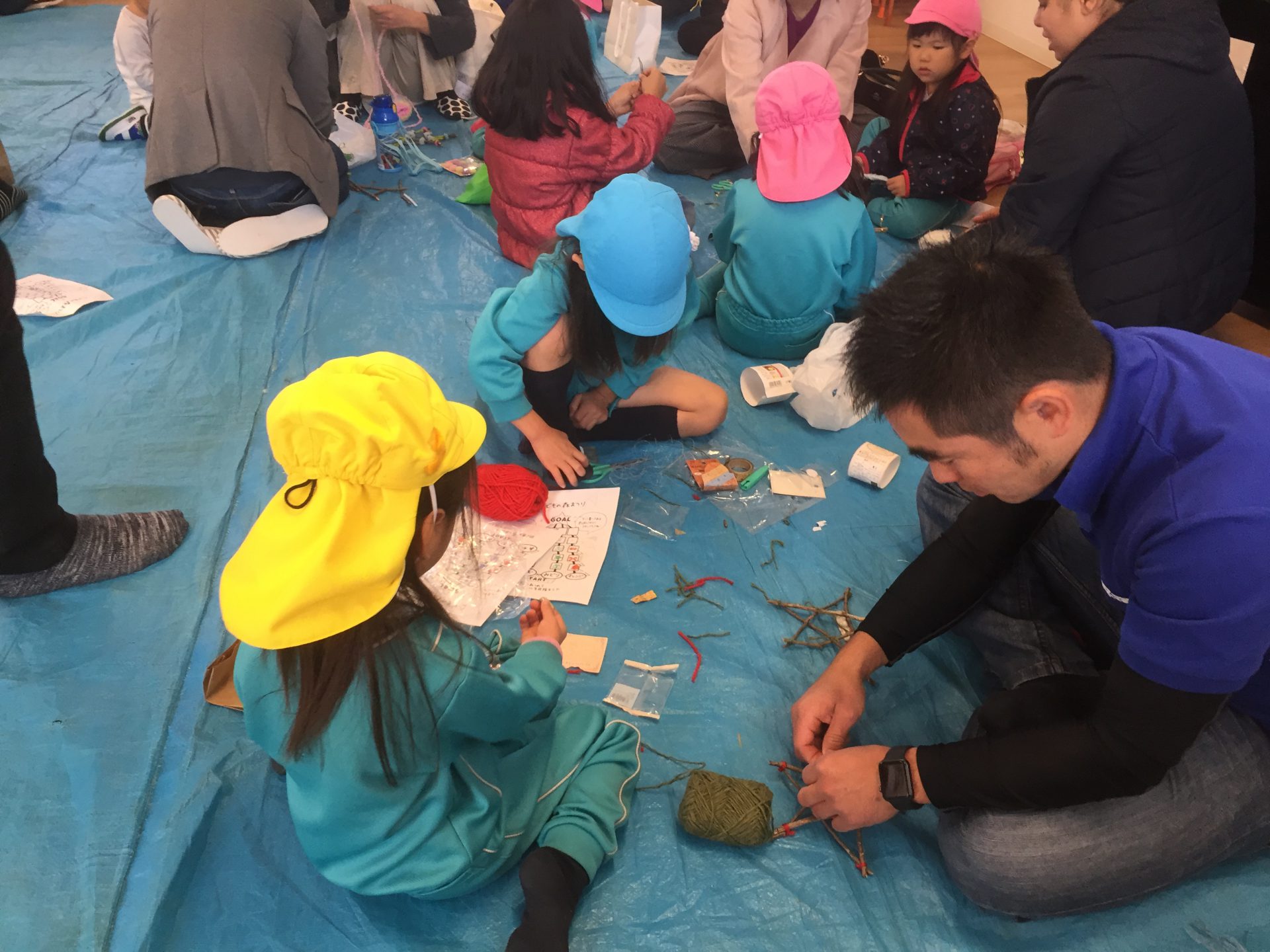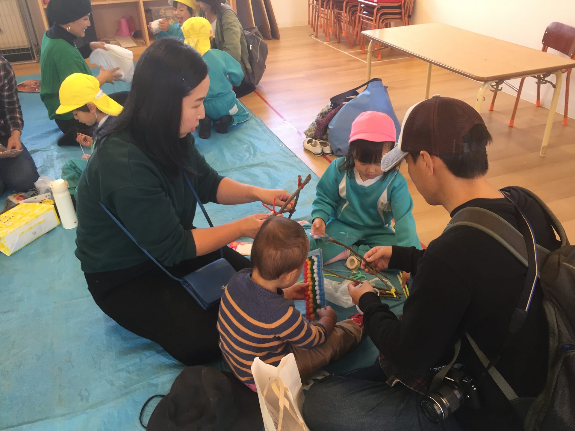 ご家庭から、毛糸やモール等使いたい素材を持ってきて頂き、「どんな風に作ろうか?」と親子で話し合いながら楽しく製作をしました。