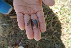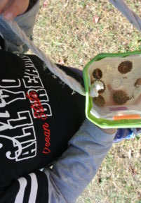 『キャー動いた!』『触らないで、毒あるかもしれないよ』大騒ぎの子どもたちです。
