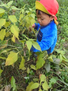0歳児のお友だちもじーとお兄ちゃん・お姉ちゃんを見て真似っ子。同じような草をとっていました。