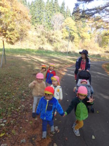 子どもたちは天気の良い日には、秋を感じ秋を発見しながらお散歩へ出かけています。