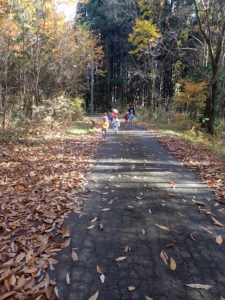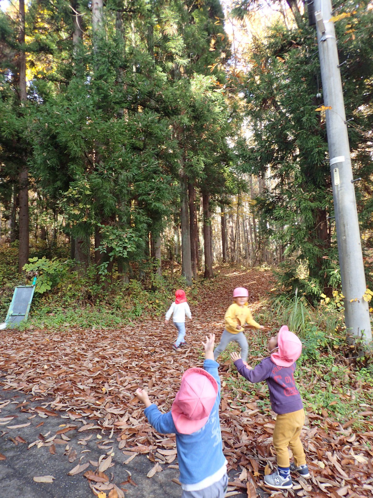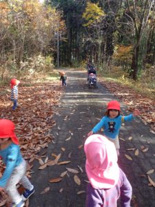 よーいどん。落ち葉道路で競争だ!!身体をたくさん動かしたよ。