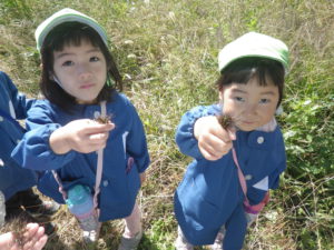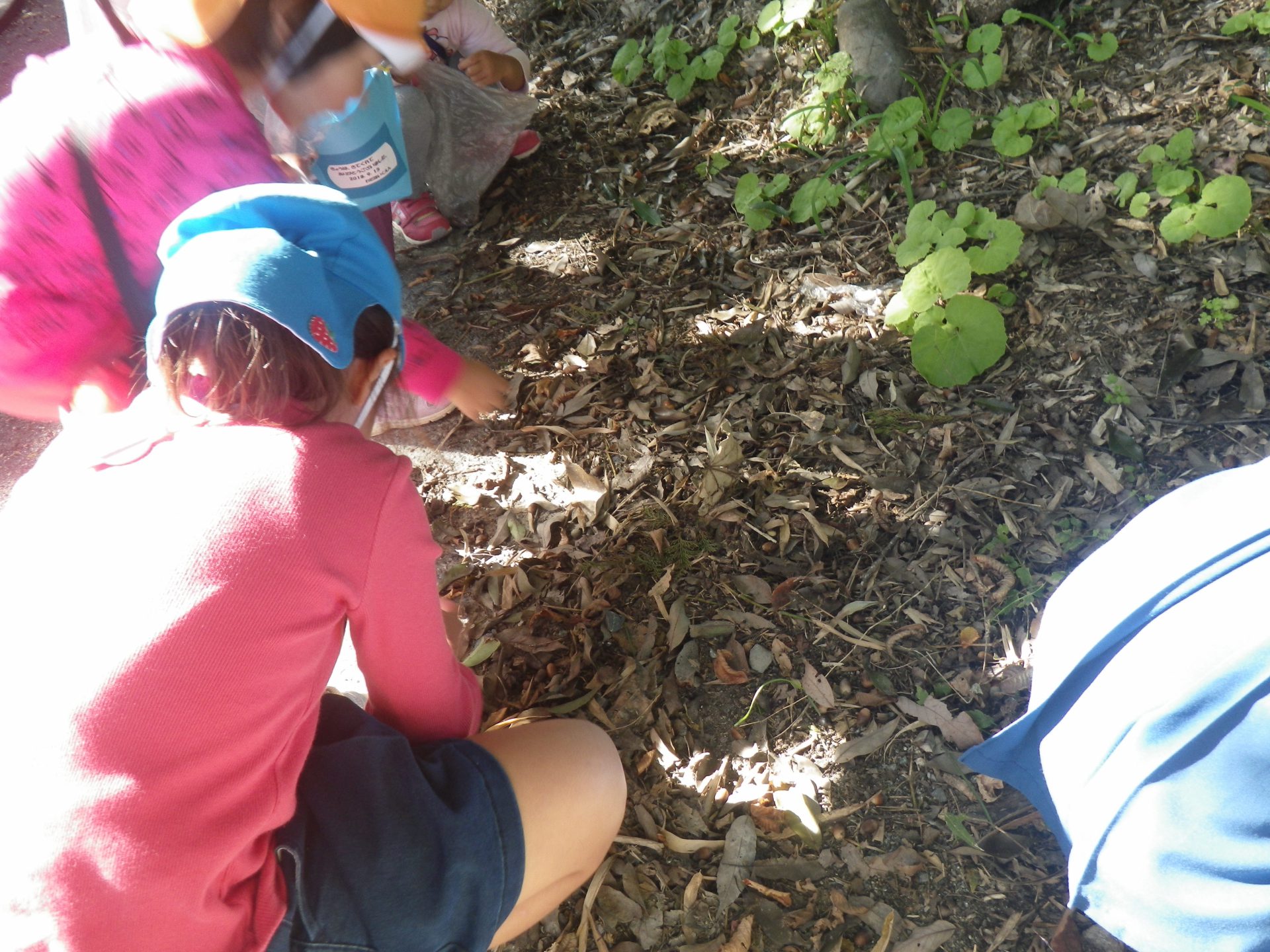 どんぐりがいっぱい落ちていて、みんな夢中になって拾います。
