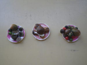 お昼のあと牛乳のふたにボンドで付けるとかわいい飾りになりました。