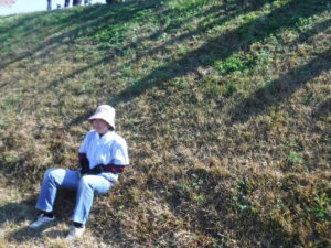 ・土手滑り以外にも楽しそうな事を自分で見つけて遊んでいました。自然の中にはたくさんのおもしろい発見があるので、これからもたくさん自然の中に出かけその中でしか味わえない体験をしていきたいです。