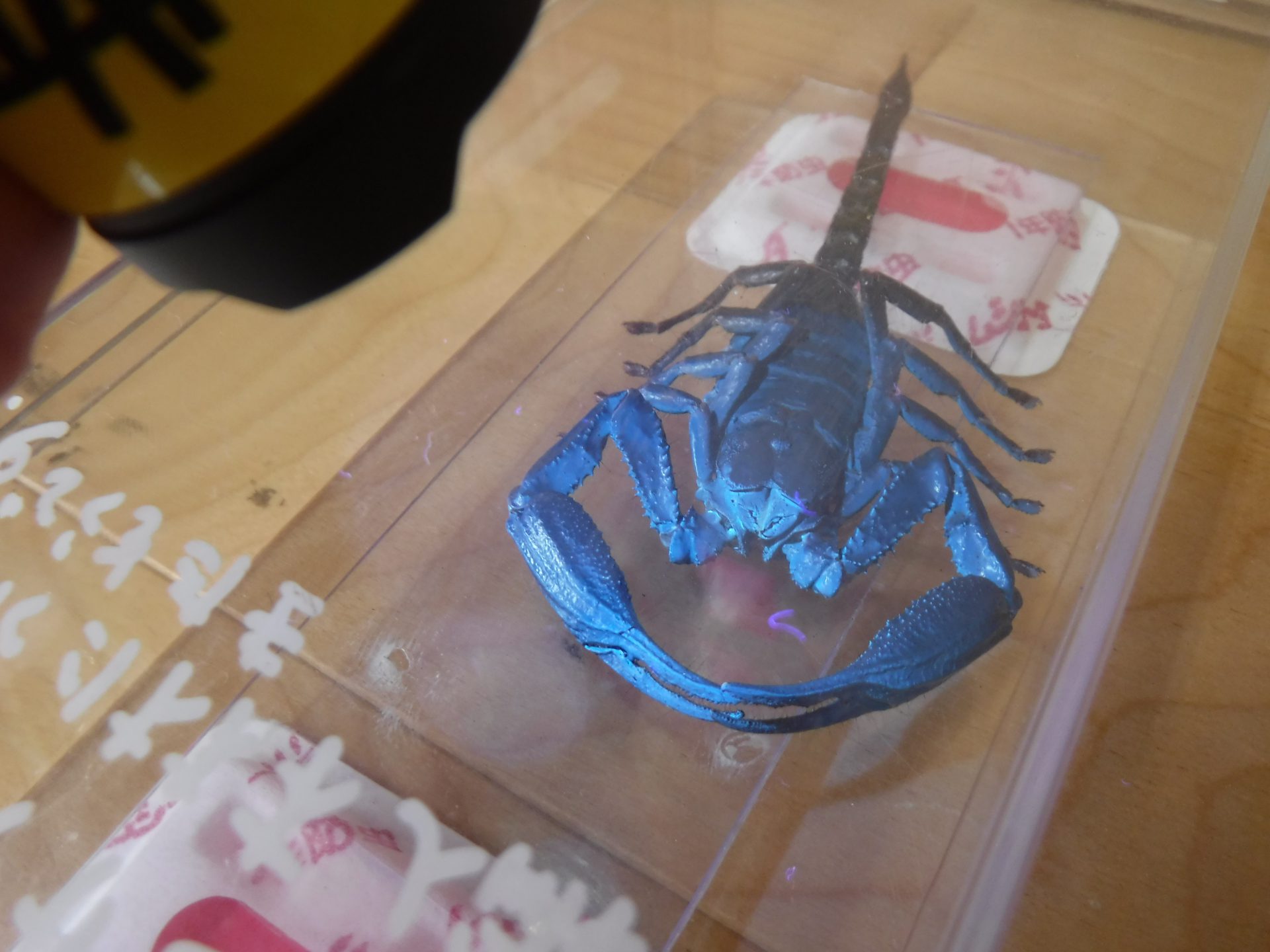 サソリは紫外線が見えるので、サソリ同士はこの色で見えているんですって!