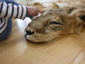 目の前の毛皮は、茶臼山動物園で亡くなったライオンです。