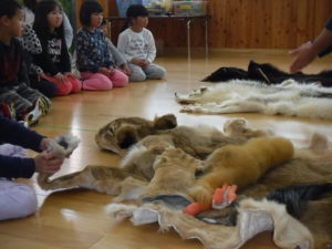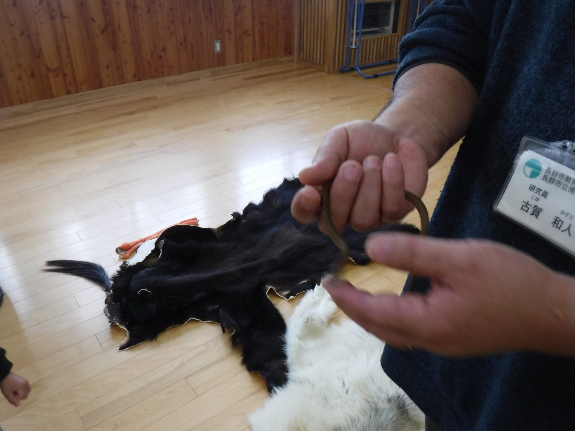 (奥の毛皮は、戸隠で捕獲されたクマです)