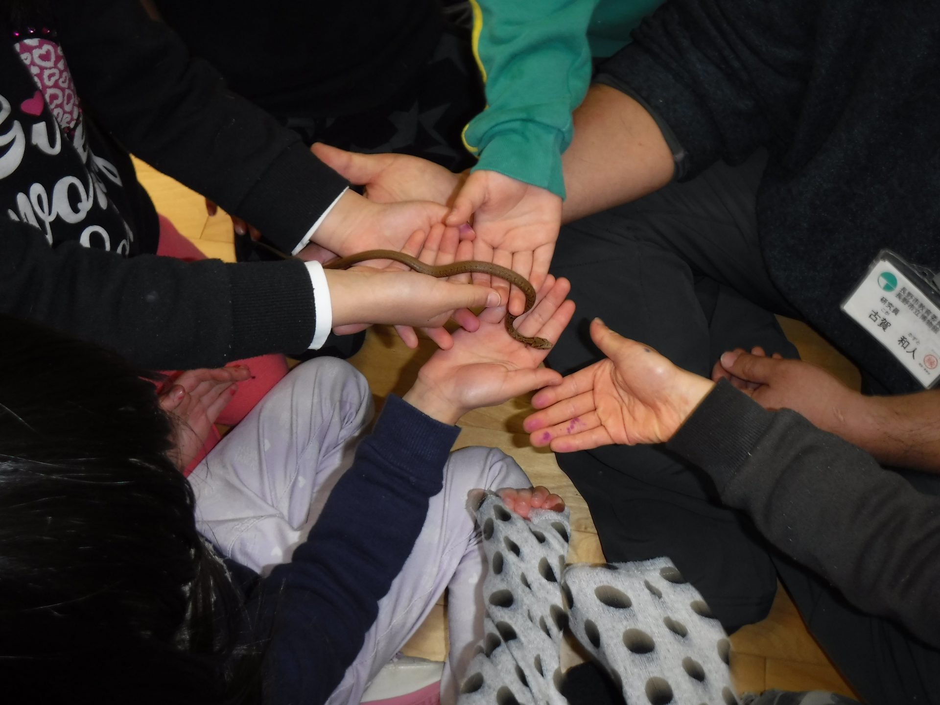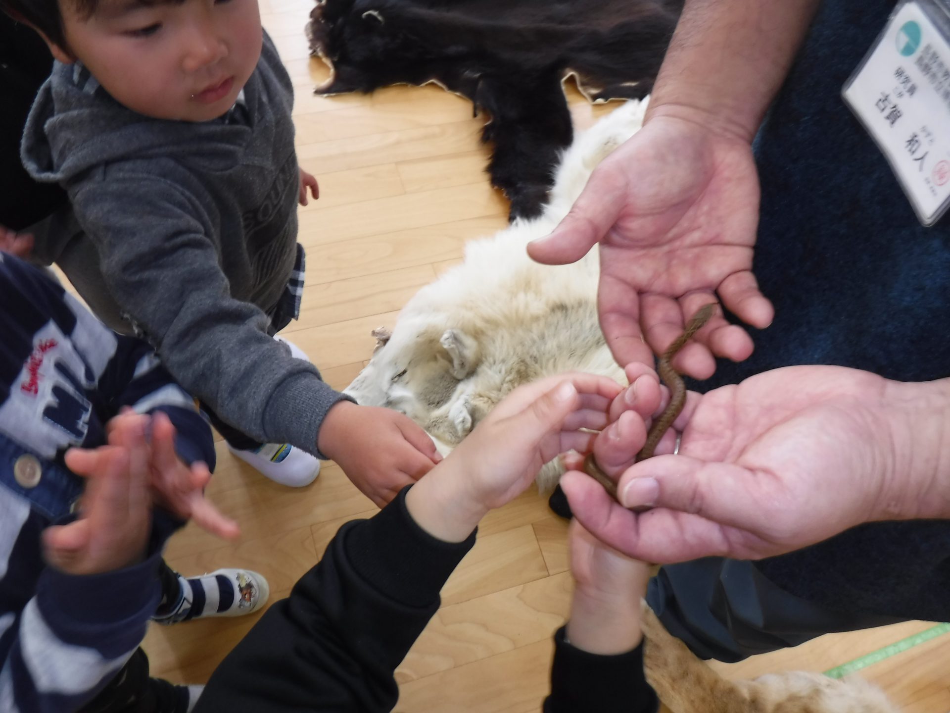 「シマヘビは毒がないけど、大人になると乱暴ですぐに噛もうとするよ」と学芸員さん。