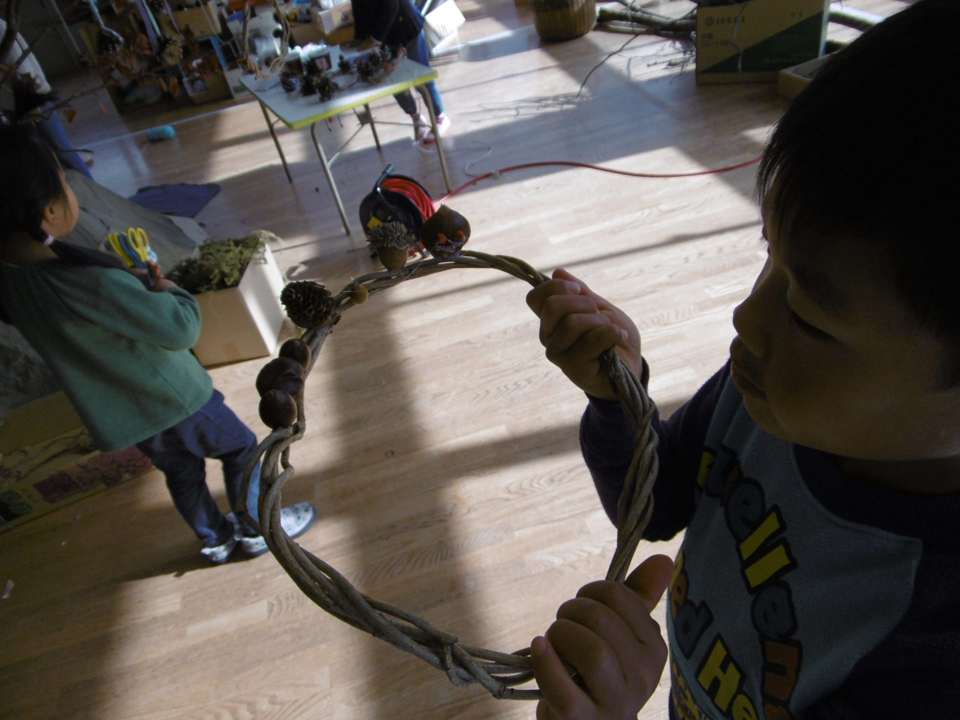 クリスマスに向けてリースを作る子も。