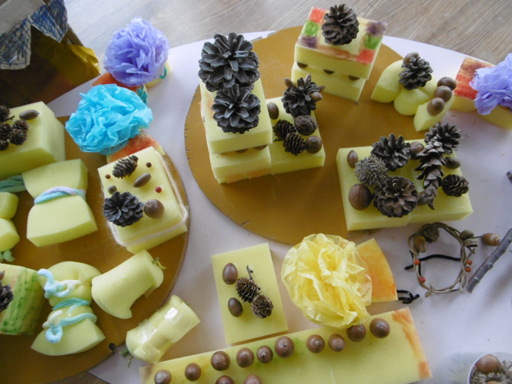 こちらはスポンジや木の実を使ってケーキ