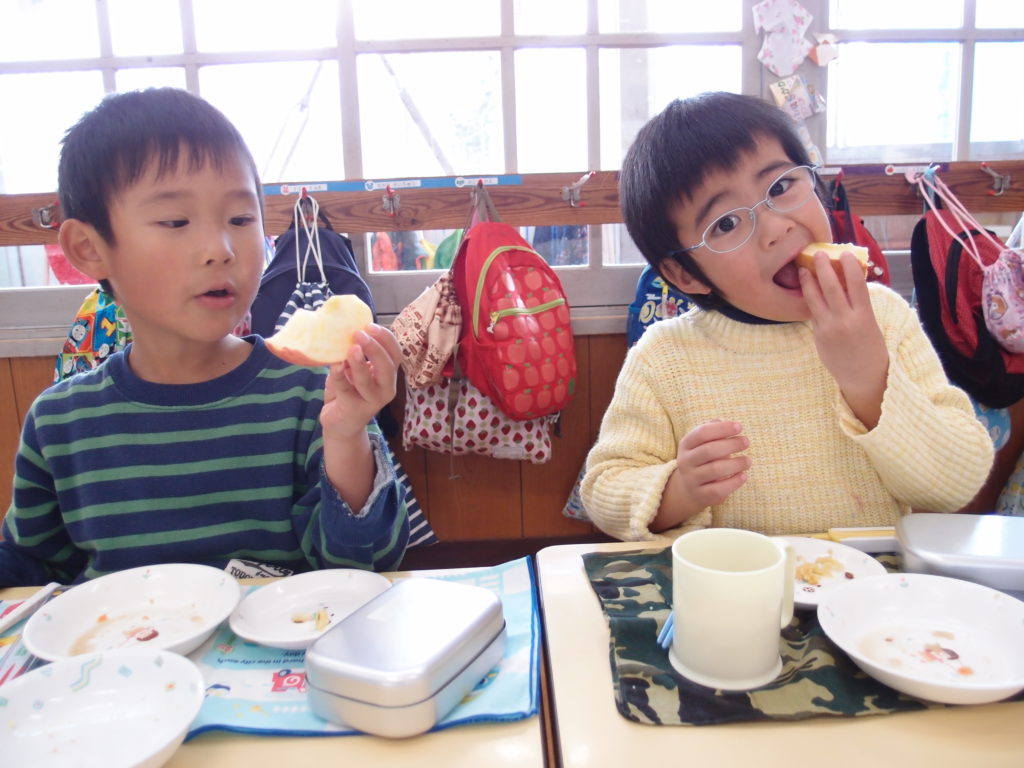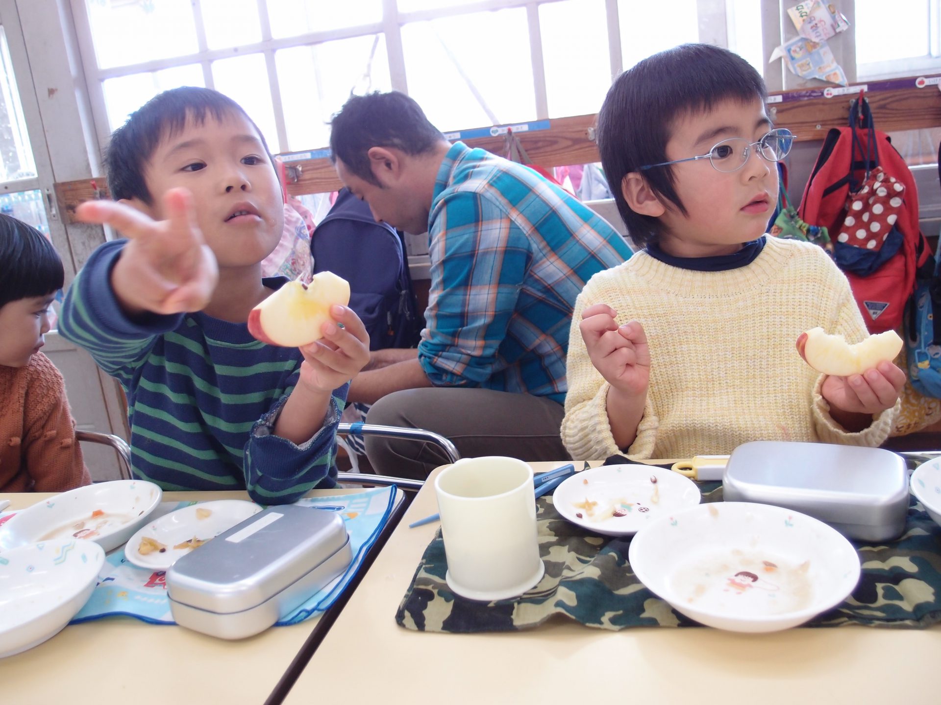 りんご以外にもおかずも全部おかわりしている子もいてびっくりです。