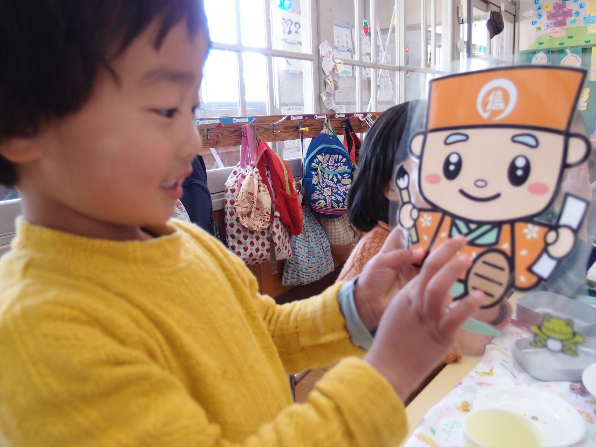 町のゆるキャラ一茶さんは子どもたちにもお馴染みの存在です。