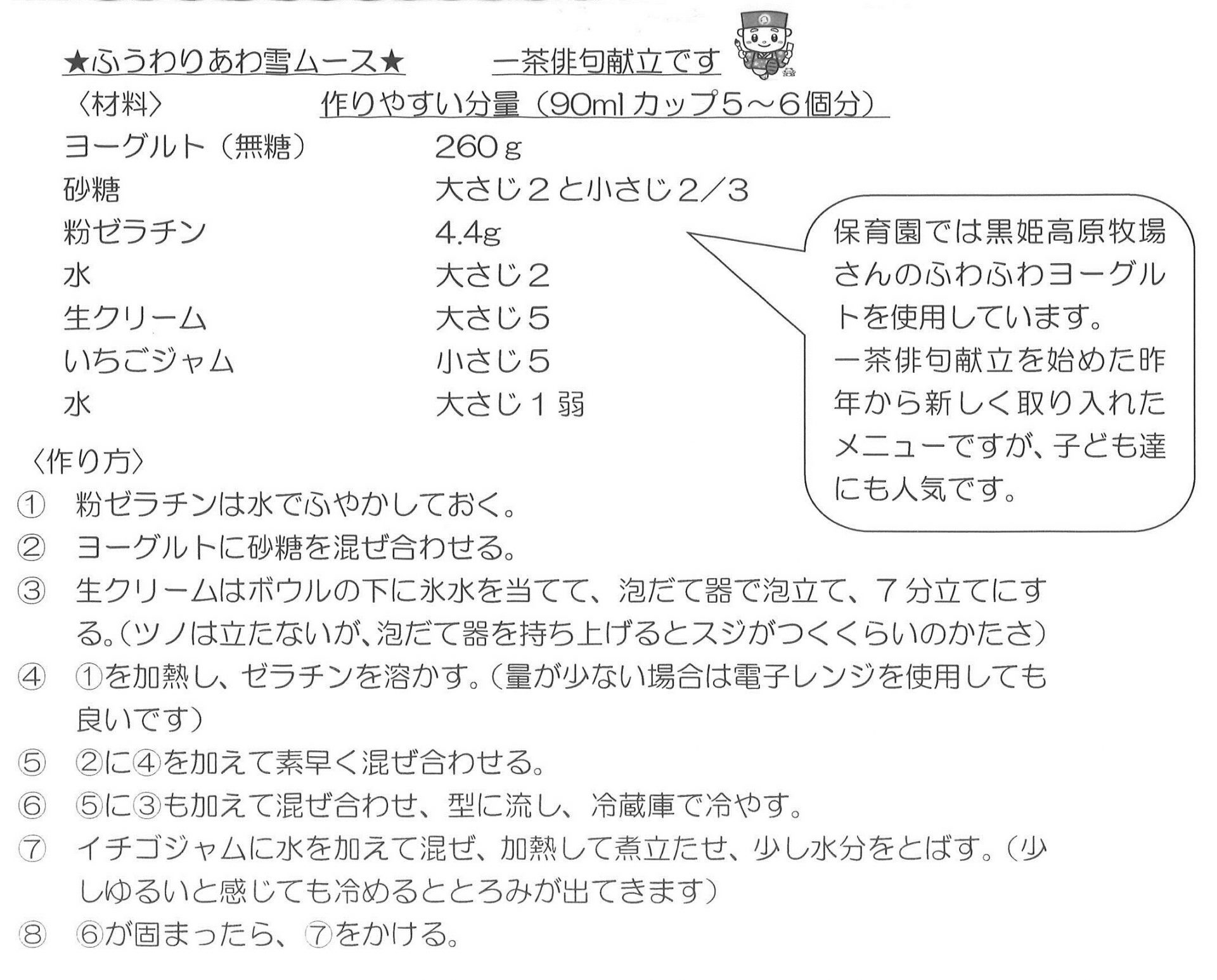「ふうわりあわ雪ムース」と名づけておやつに提供しました。