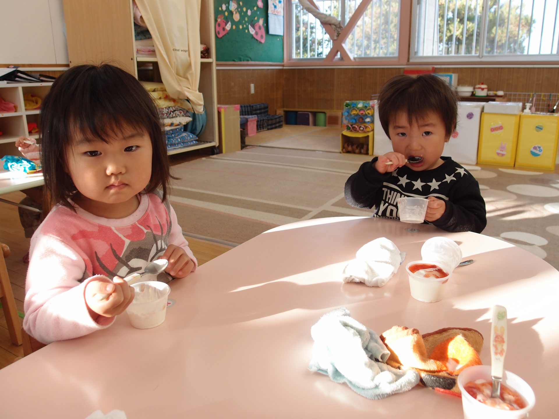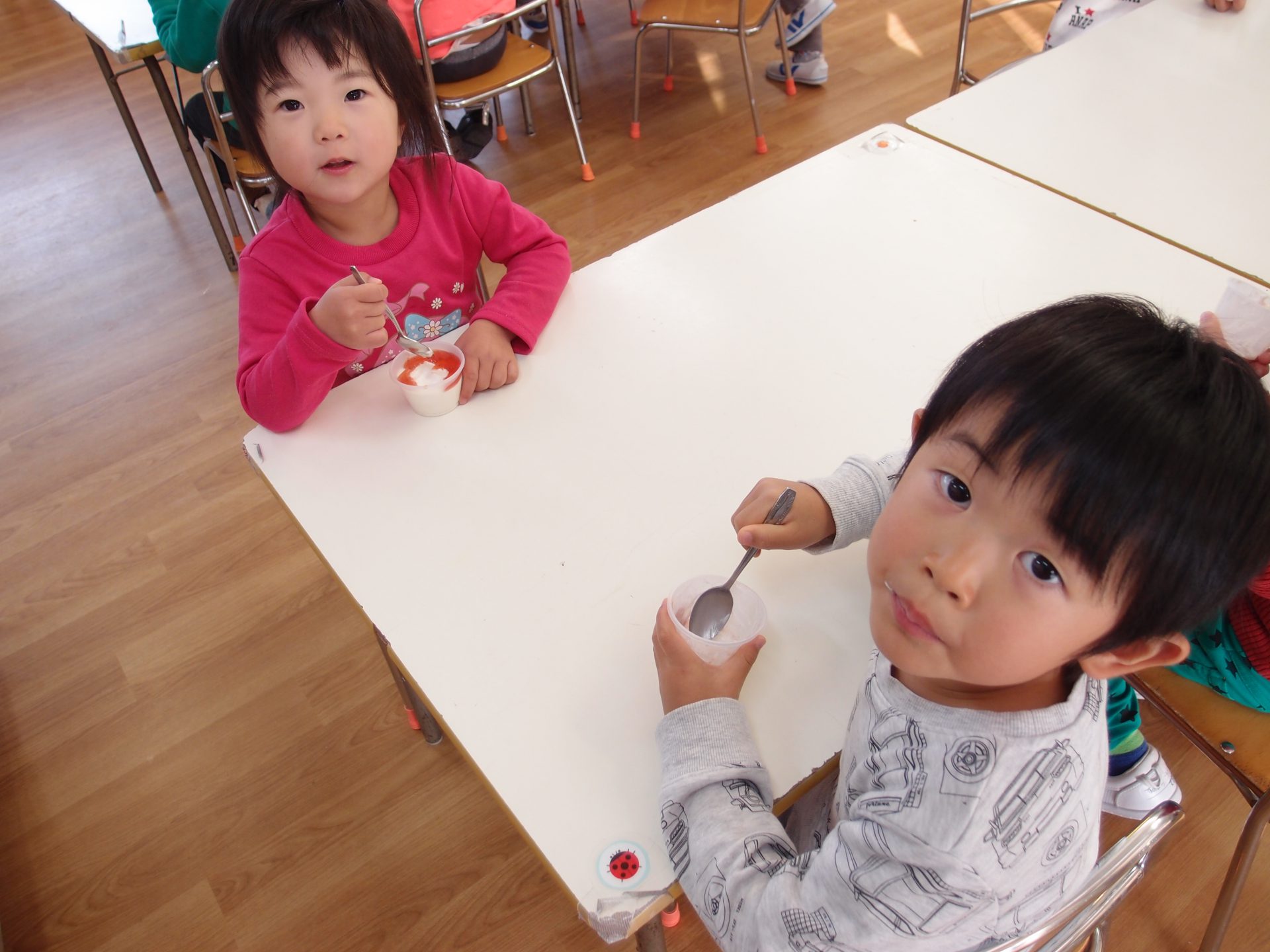 年長さん、年中さんはあっという間に食べ終えた子が多かったようで、写真撮ろうと思って部屋へ入った時には