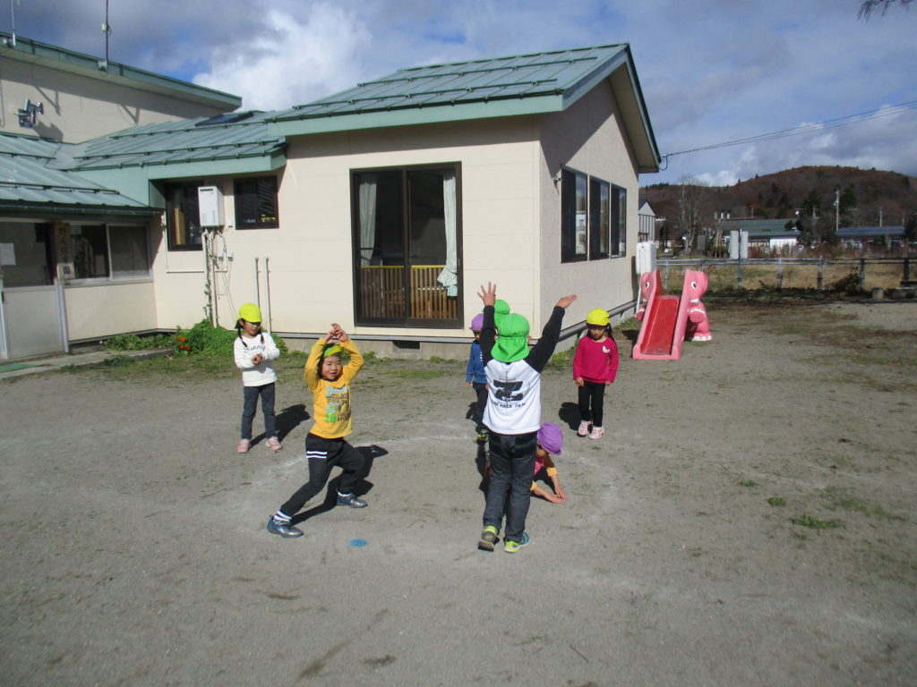 だんだん寒くなってくると、外へ出るのも億劫になってきますが、子ども達が元気に走っている姿を見ると、本当に子どもは風の子なんだと感心します。寒さに負けず、体を動かすことの楽しさを味わったり、友だちと協力したり、競ったりしながら遊ぶ姿に寄り添い、活動を考え進めていきたいと思います。また、雪が降る前に季節の移り変わりを肌で感じるためにも、暖かい日には散歩に出かけたいと思います。