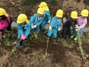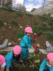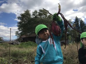 「ぬけないよ~」「だれか手伝って~」という反面、「あと少しだ!」「あきらめずに頑張ろう!!」と、お芋一つ抜くのに、色々な事を考え、色々な感情を味わっています。