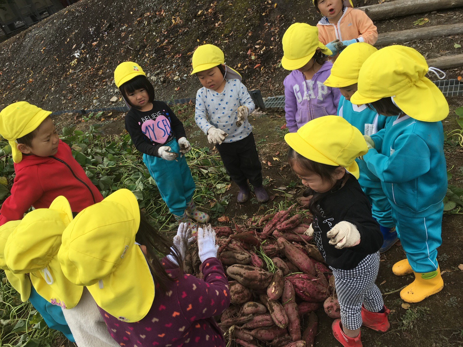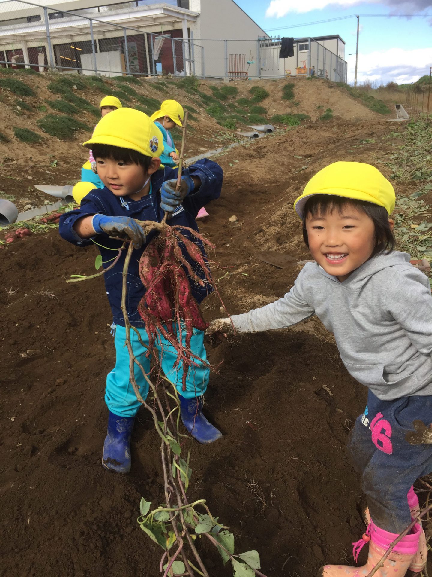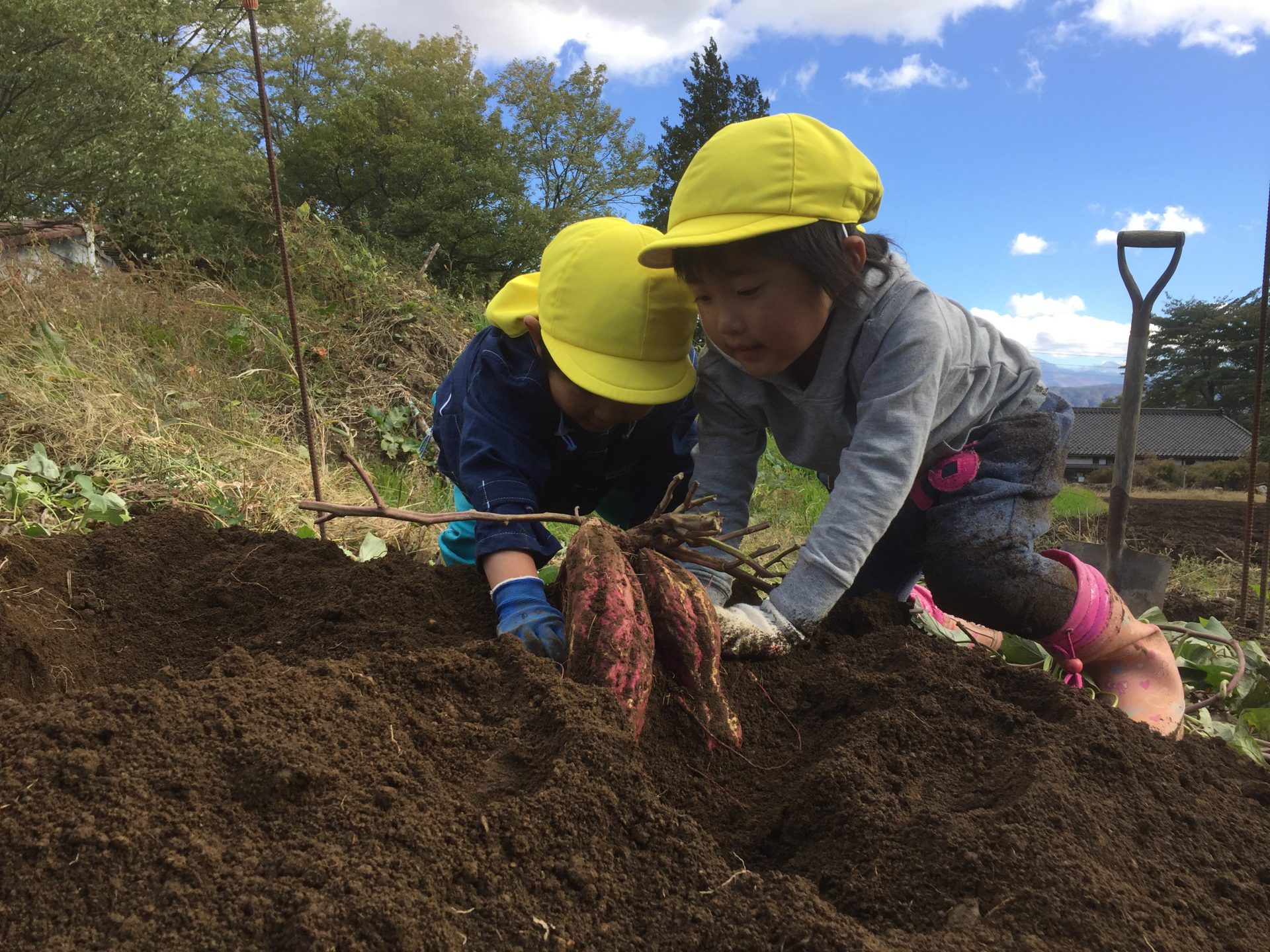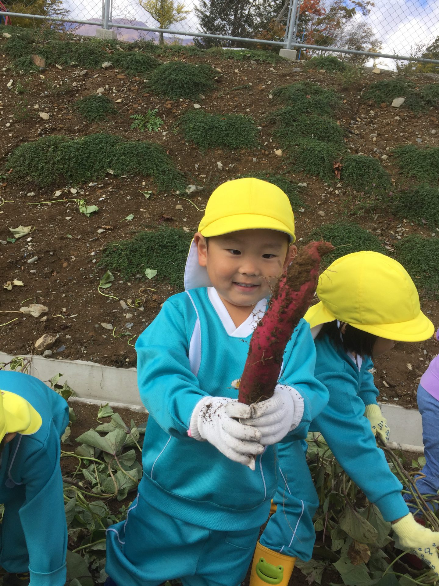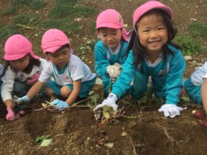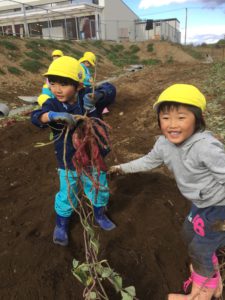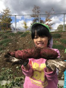 お芋が、とれた瞬間の子どもの表情はとてもいい顔をしています。