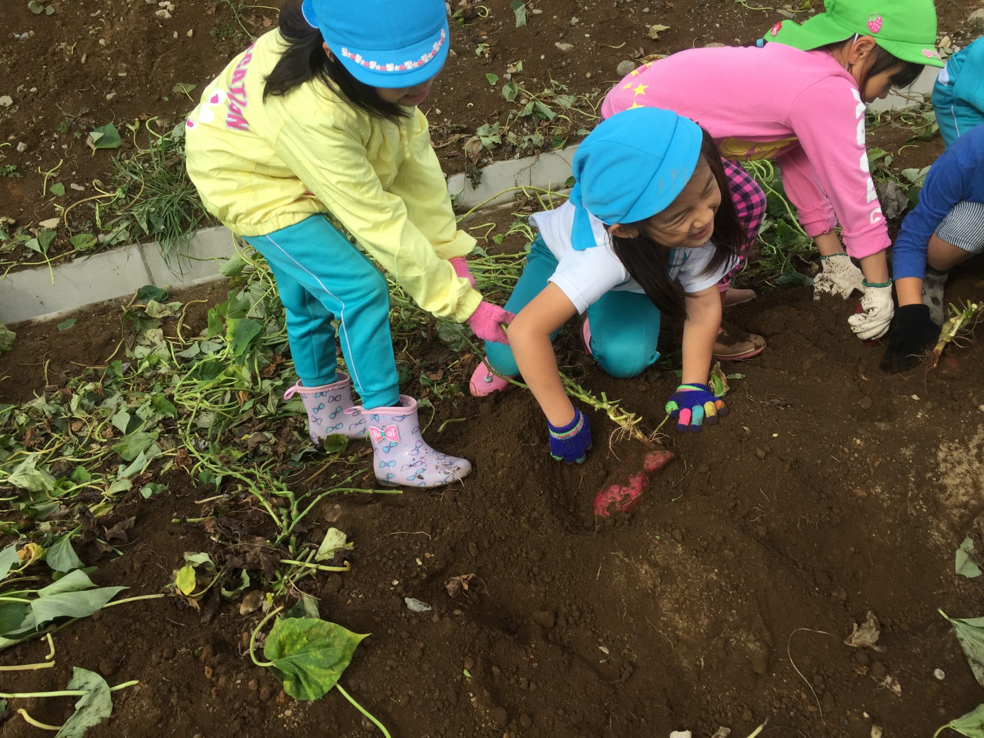 こちらは、お芋が見えているのになかなか抜けず苦戦しています。