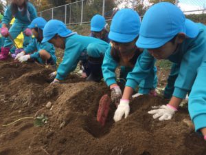お芋ほりについて絵本等でみる機会もあったかと思いますが、実際に体験することで、色々な発見が出来たり、思い出にも残る良い経験になってほしいと思います。