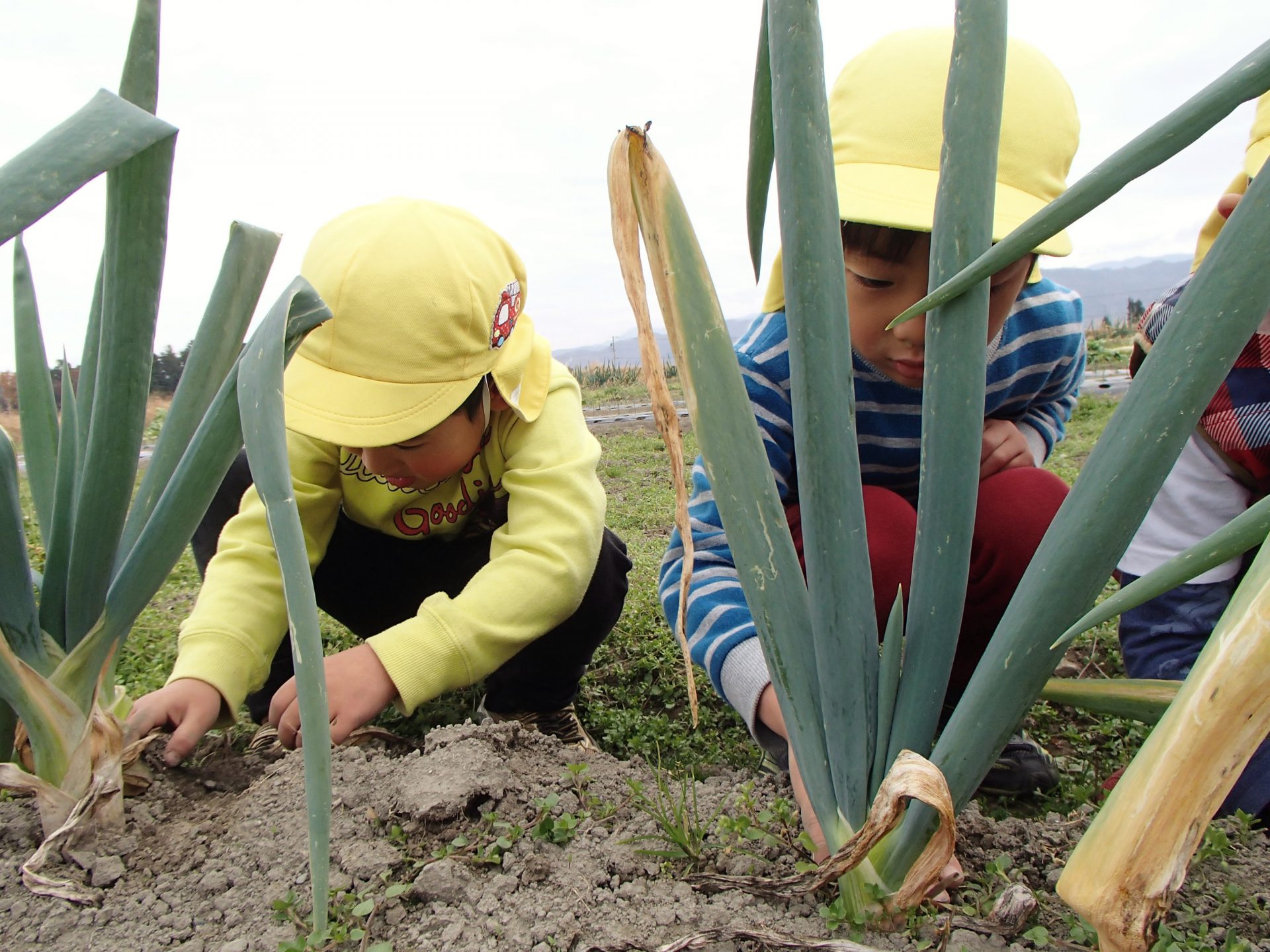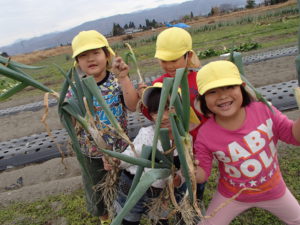 年長組が、中澤のおじいちゃん家の広い畑をお借りして、春から、大切に育ててきたネギと大根!!