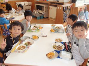 どの学年もおいしそうに豚汁を食べていました(^^)