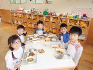 年長組では、「これは、僕が切った大根?」と探しながら食べていました。