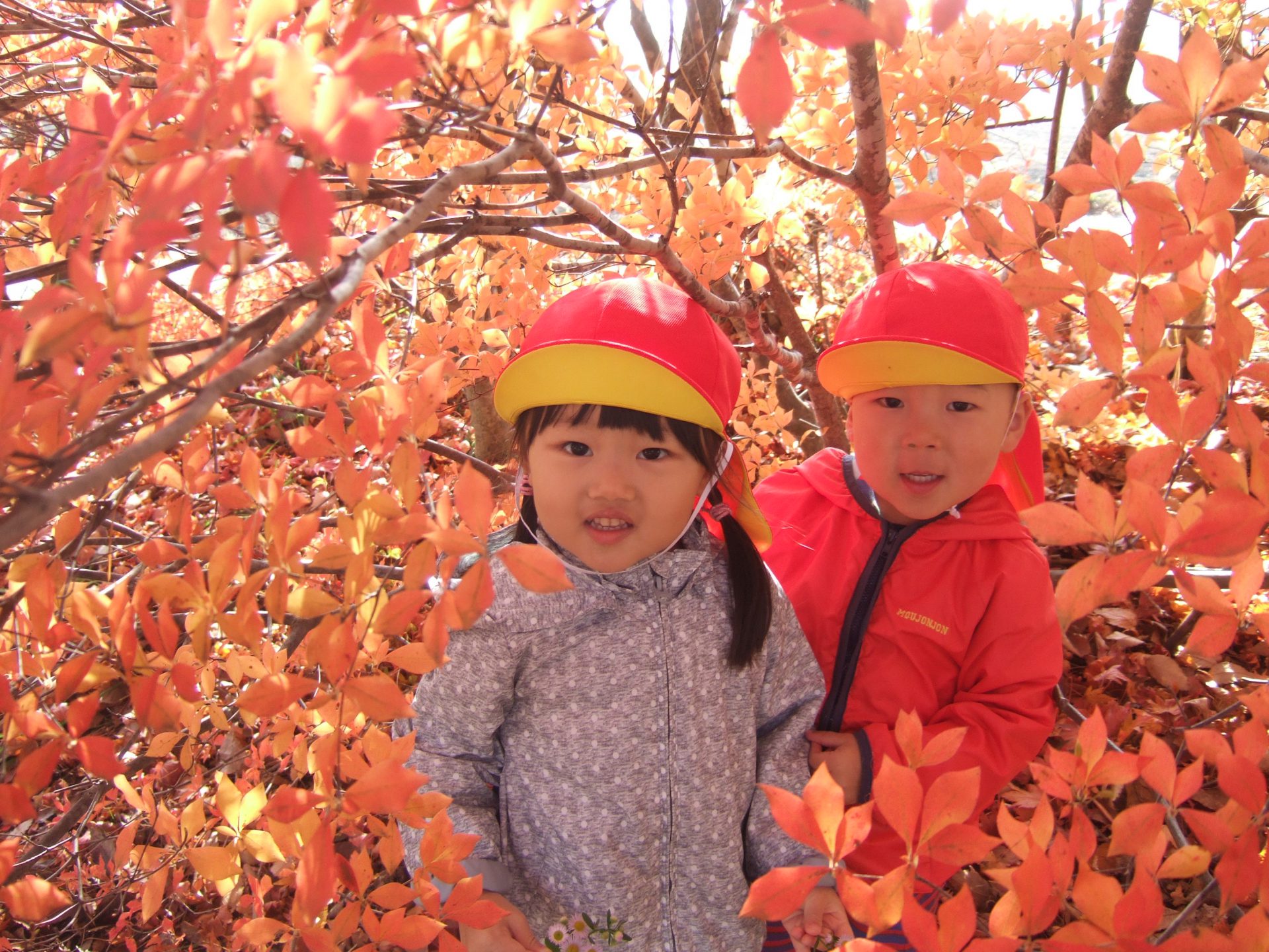 保育園の鮮やかな紅葉は終わりましたが、まだ見頃の場所がある!ということで早速散歩に出かけた2歳児のさくらんぼさん。